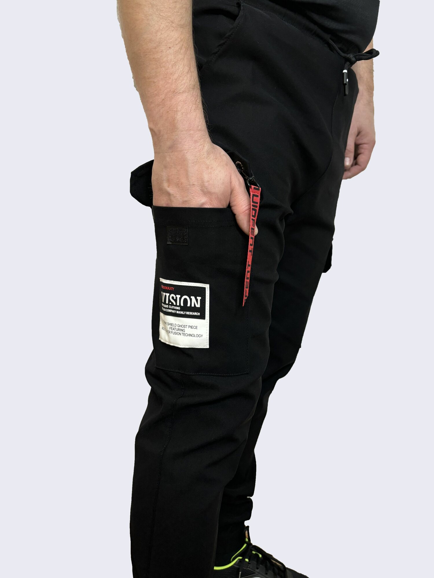 Брюки джоггеры Весна-лето 2025, размер L, черный, красный