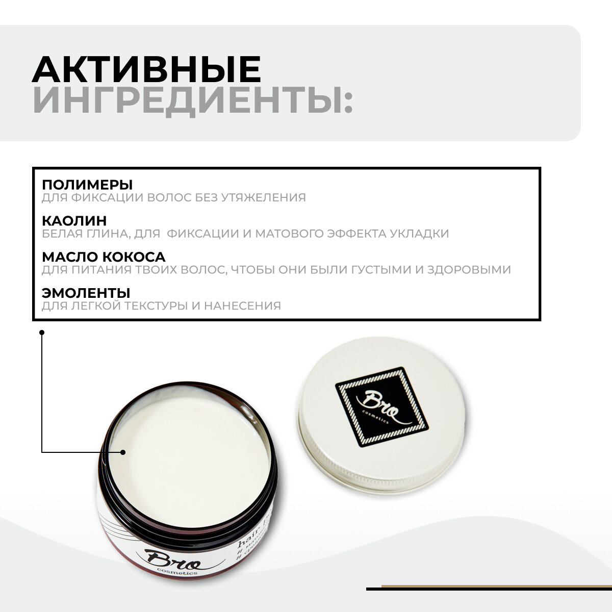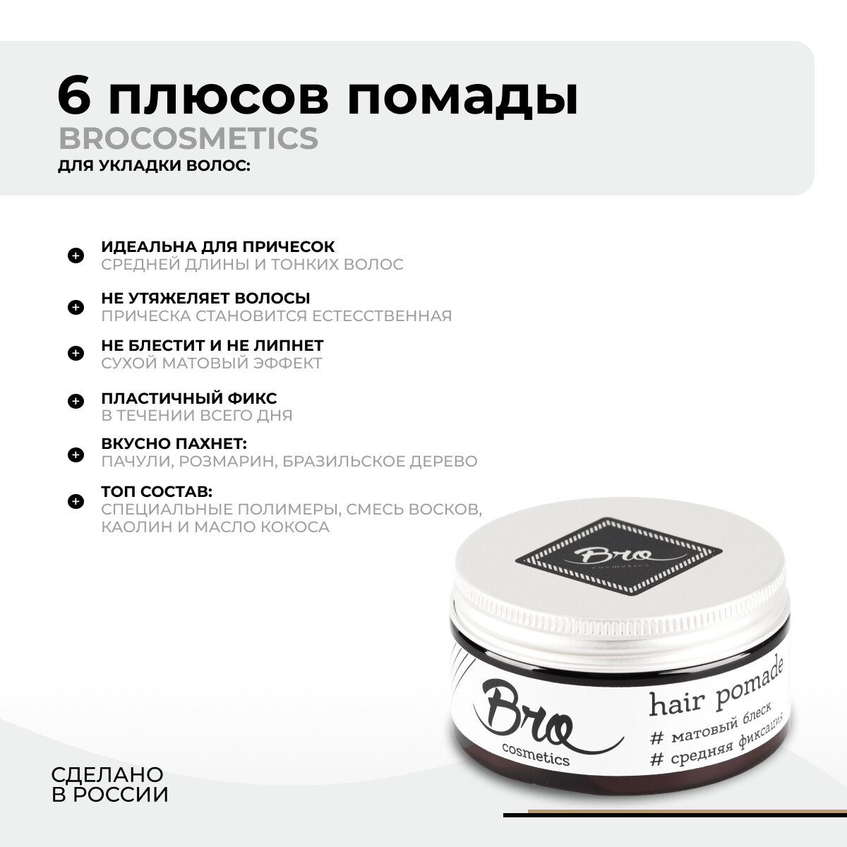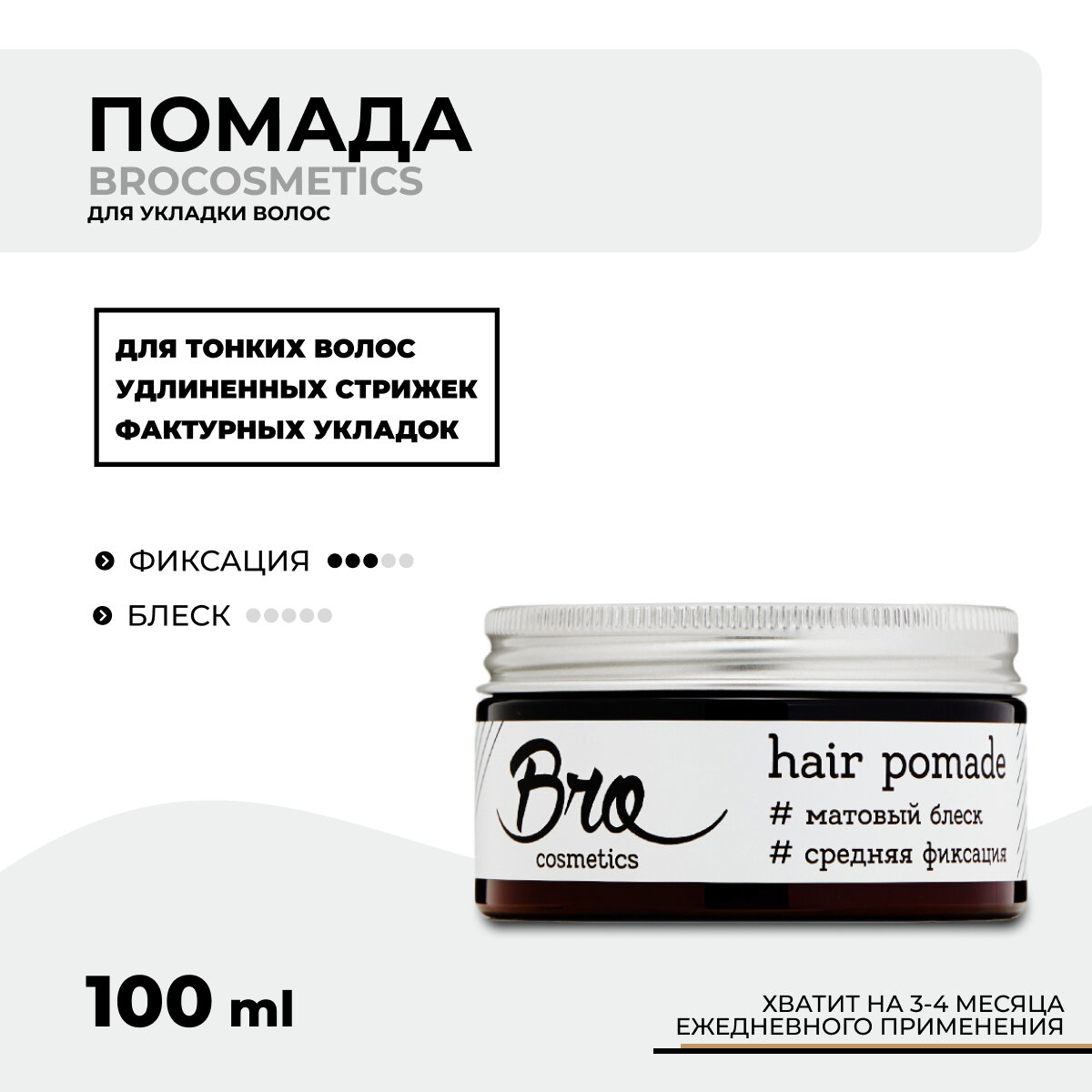Помада для укладки волос BROCOSMETICS // средняя фиксация, матовый эффект, 100 мл интересное: