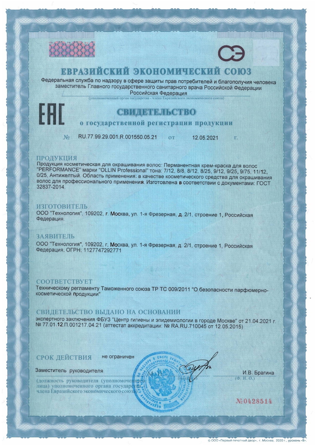 Купить Ollin Performance - Оллин Перформанс Стойкая крем-краска для волос, 60 мл - Оллин Перформанс 8/12 Светло-русый пепельно-фиолетовый