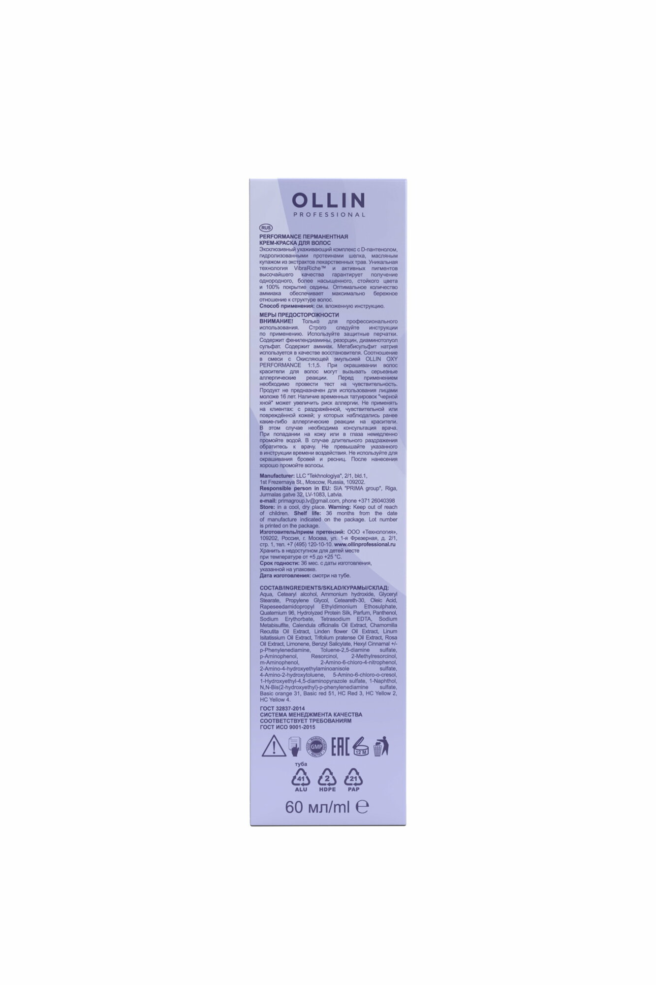 Перманентная крем-краска OLLIN, 9/25 PERFORMANCE блондин фиолетово-махагоновый 60мл