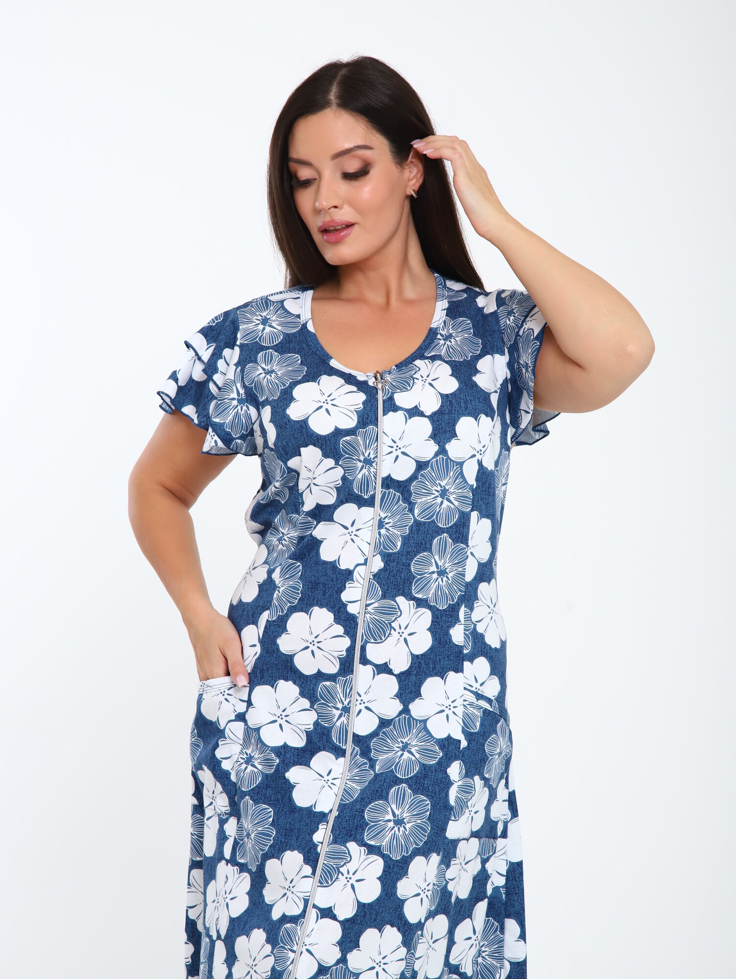 Халат GoldeN GIRL, размер 58, синий, белый интересное: