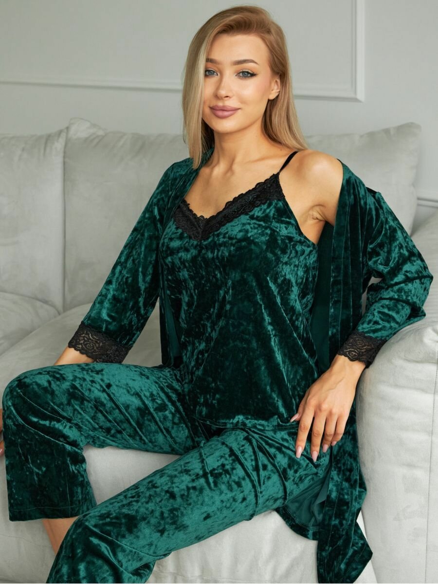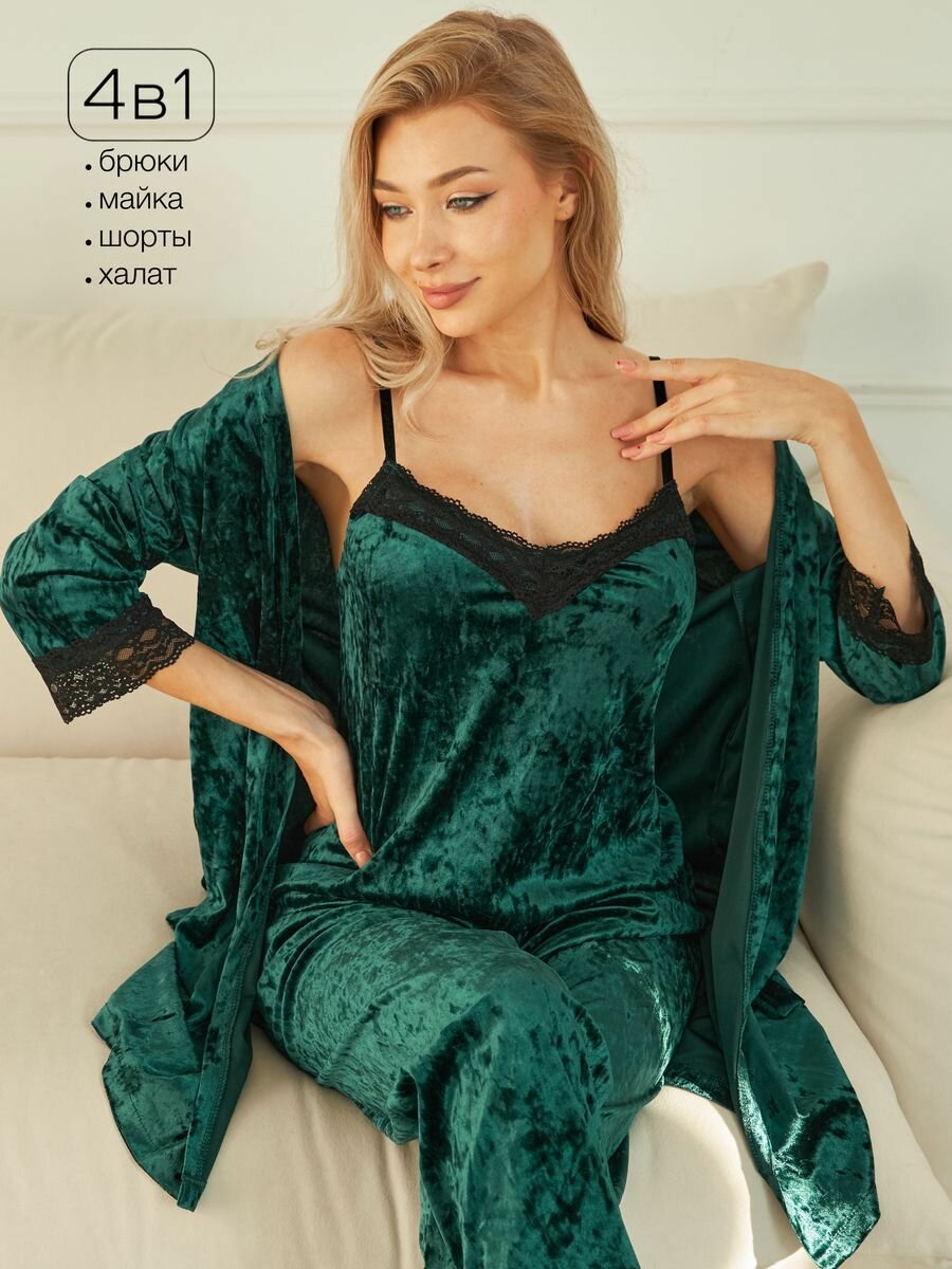 Пижама ENDI Базовая коллекция, размер M / 44, изумрудный