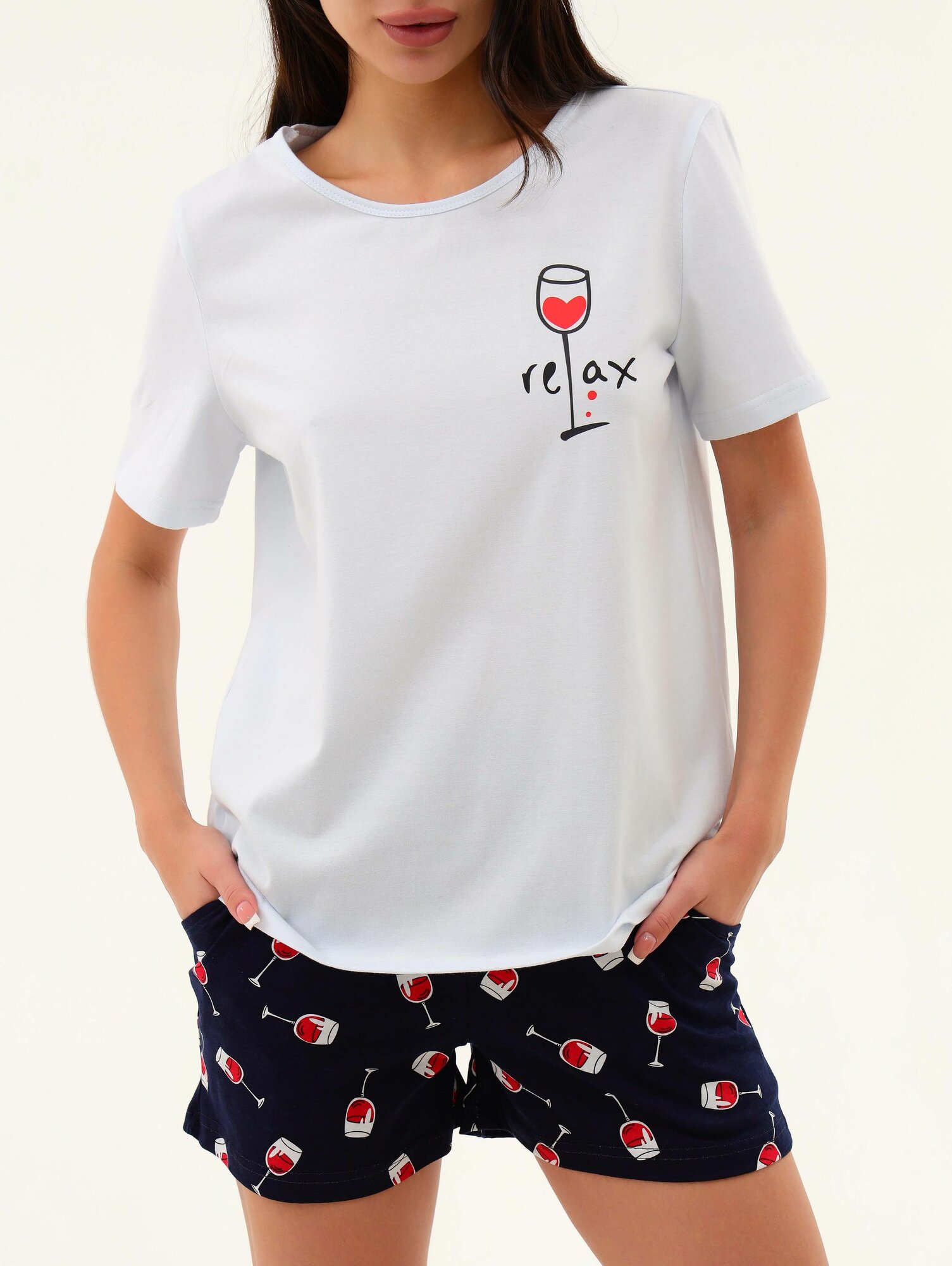 Пижама TexVille Базовая коллекция, размер 44, красный, белый
