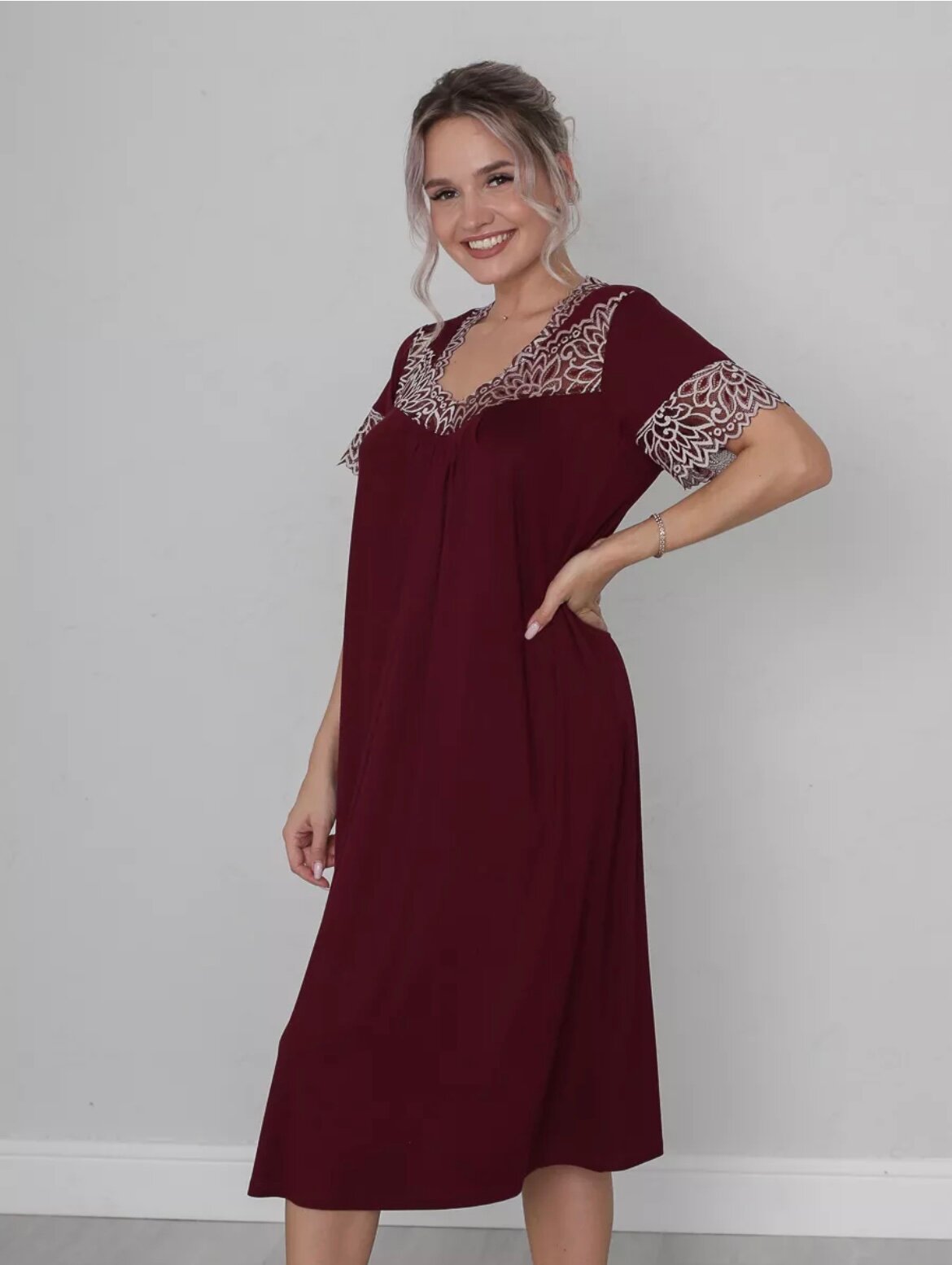 Сорочка Текстильный Край, размер 64, бордовый