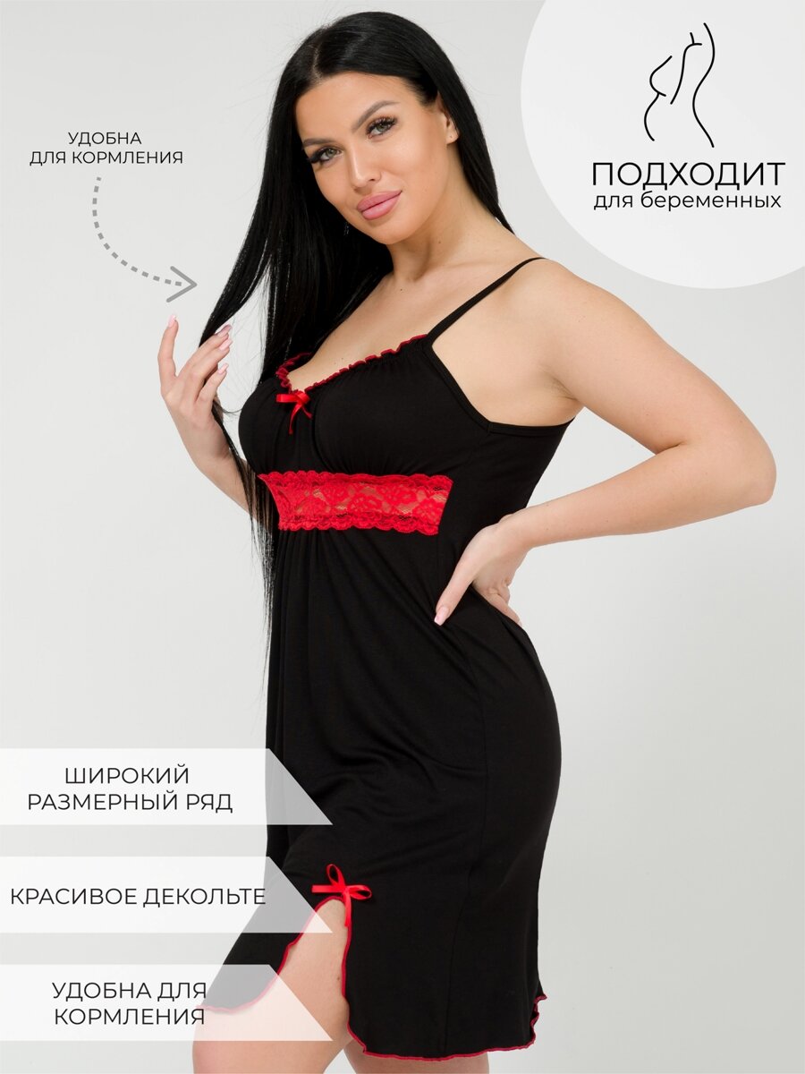 Сорочка SeLena женская, размер 44, черный, красный