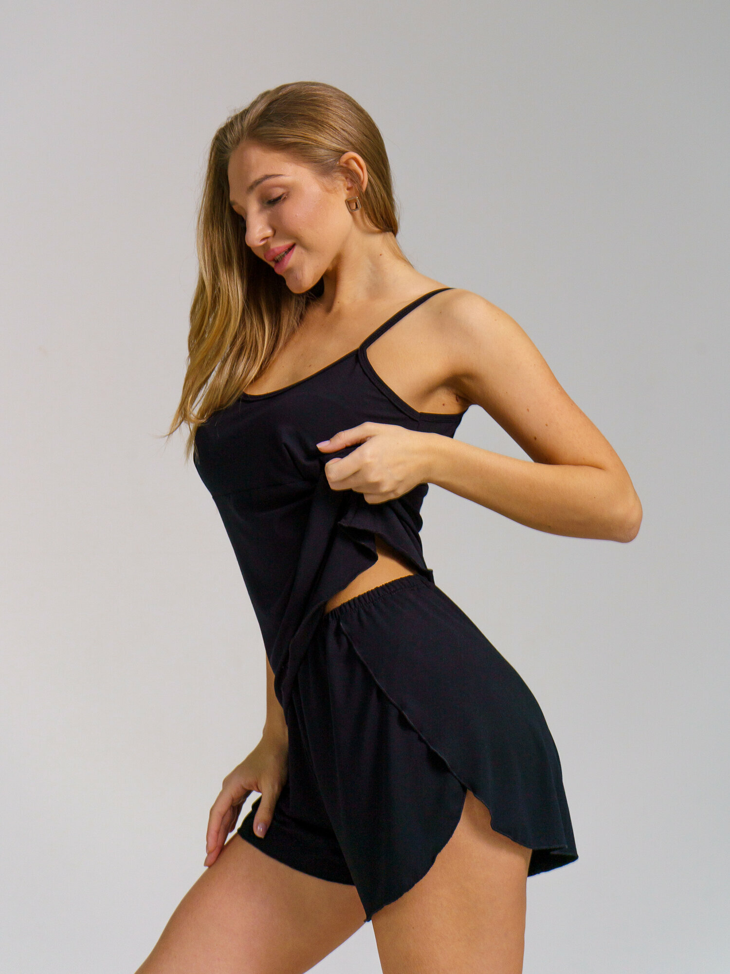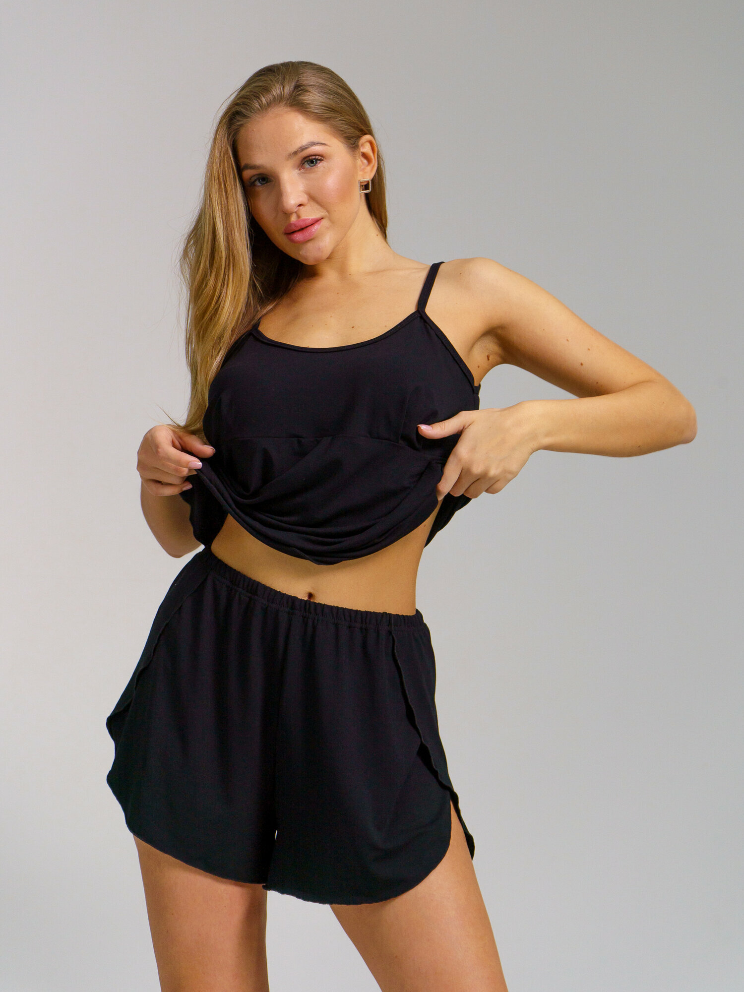 Пижама BUY-TEX.RU женская с шортами и топом, размер 46, черный