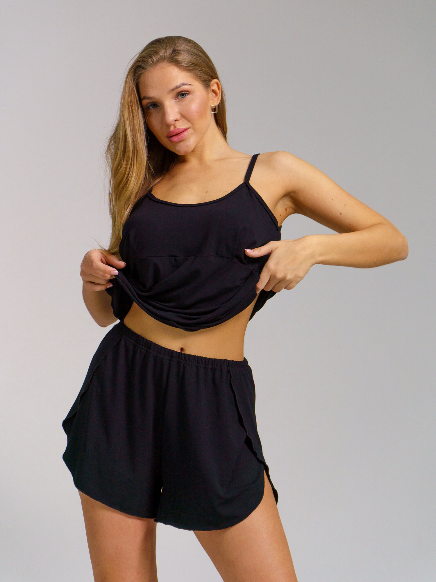 СохранитьПижама BUY-TEX.RU женская с шортами и топом, размер 44, черный интересное: