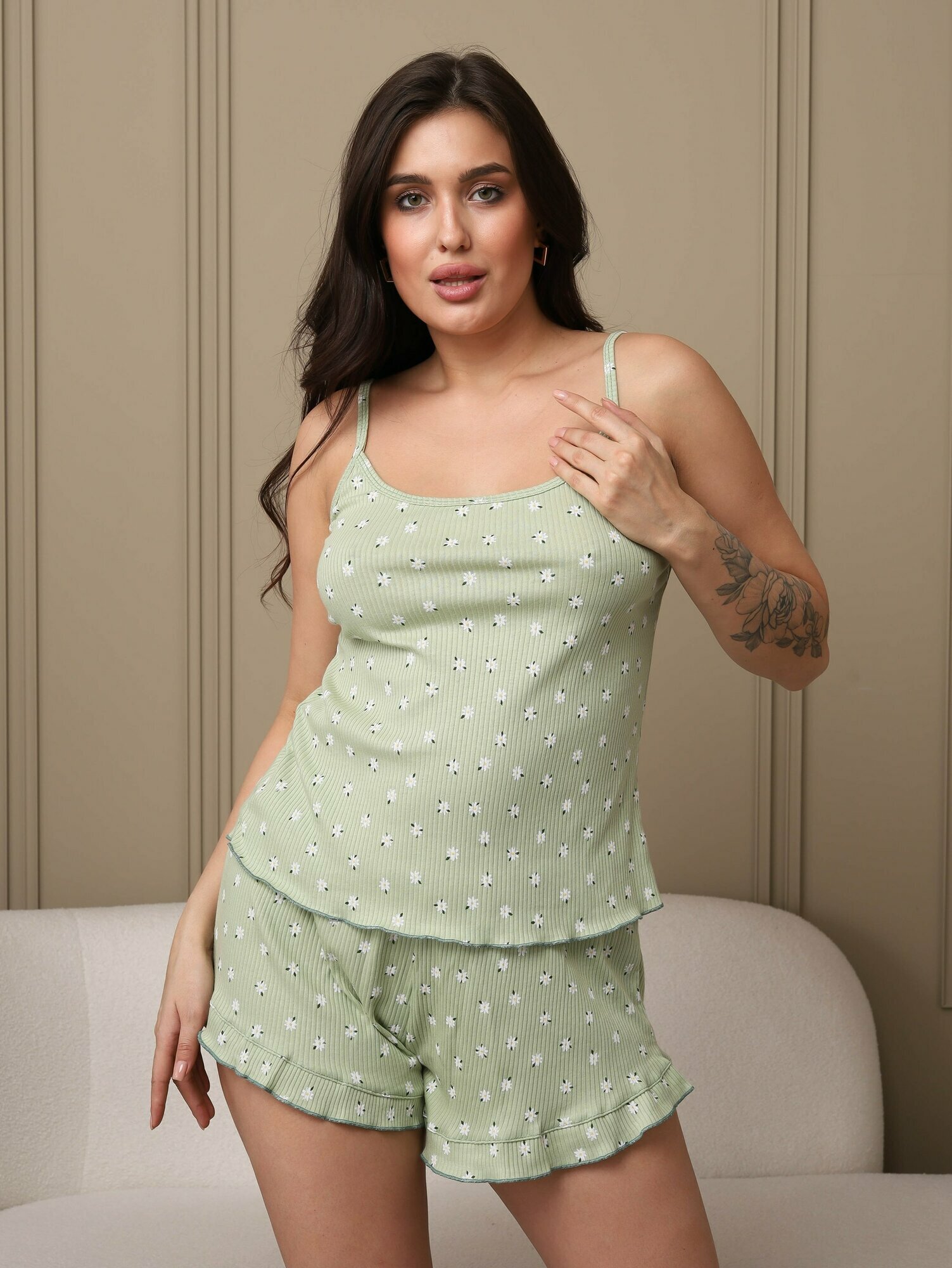 Пижама BUY-TEX.RU женская с шортами в рубчик, размер 44, светло-зеленый