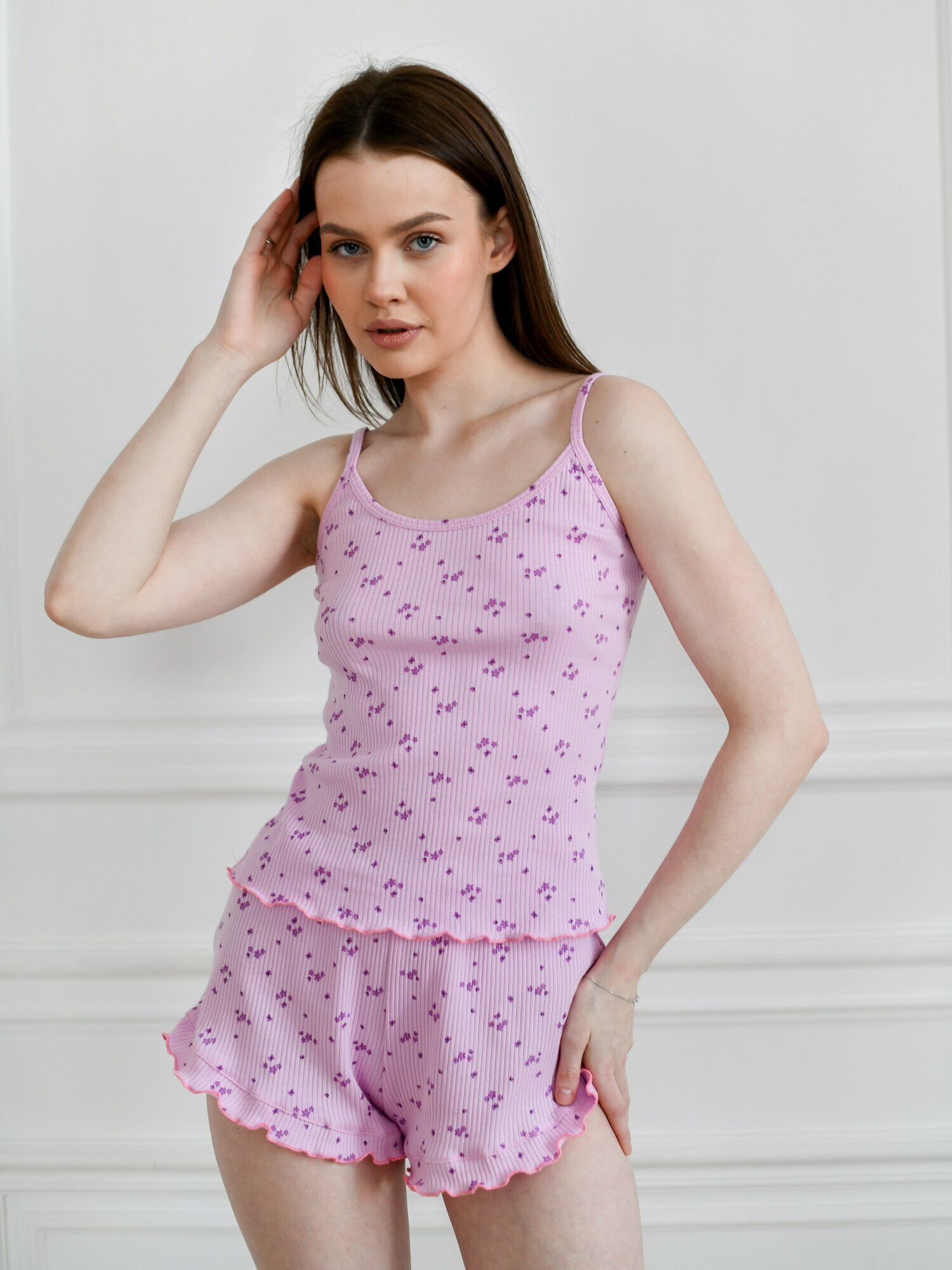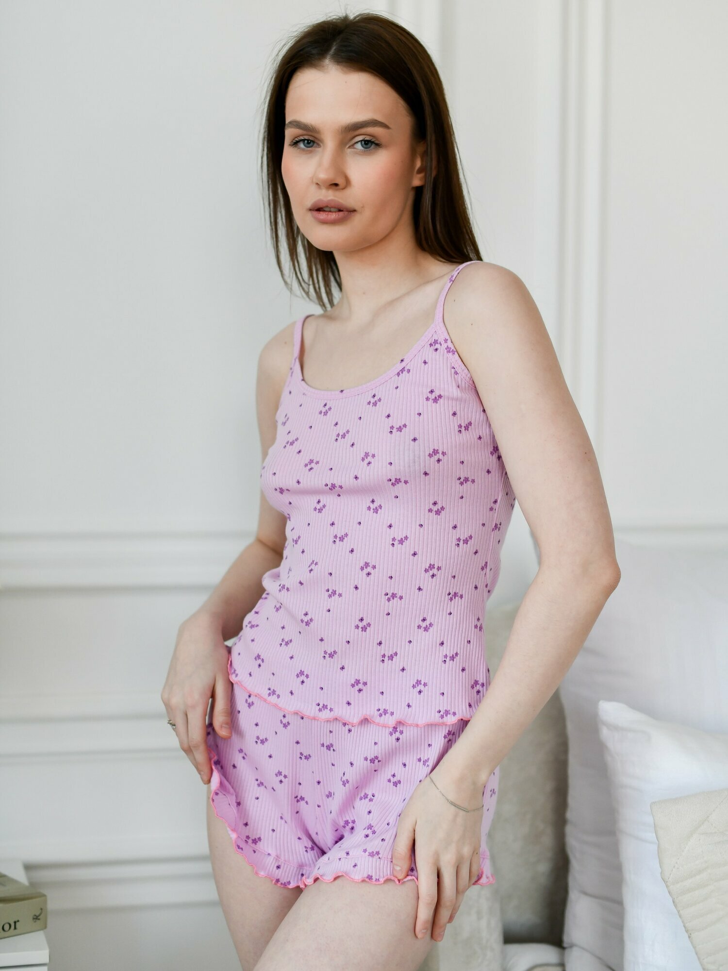 Пижама BUY-TEX.RU женская с шортами в рубчик, размер 44, розовый