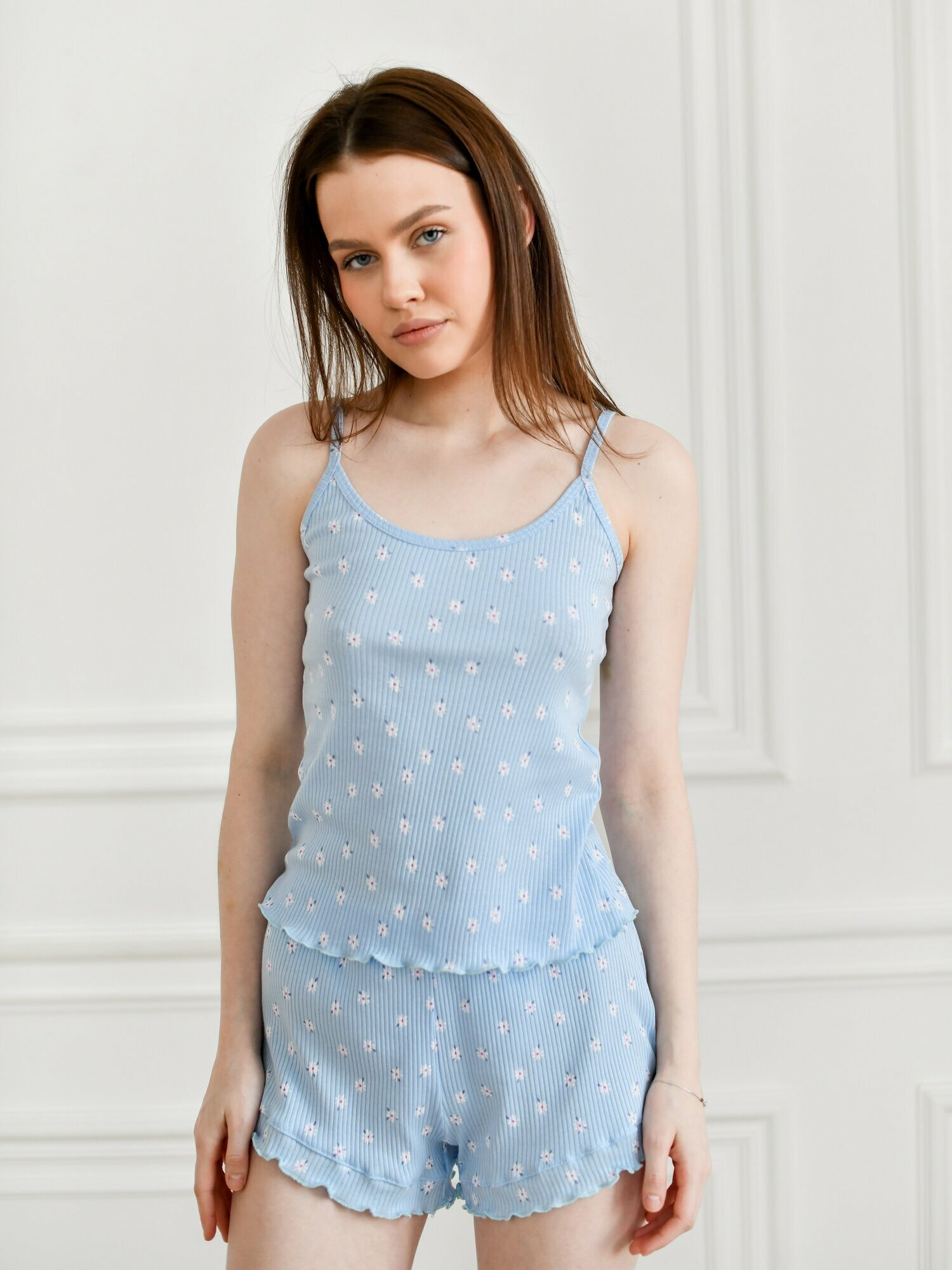 СохранитьПижама BUY-TEX.RU женская с шортами в рубчик, размер 44, голубой интересное: