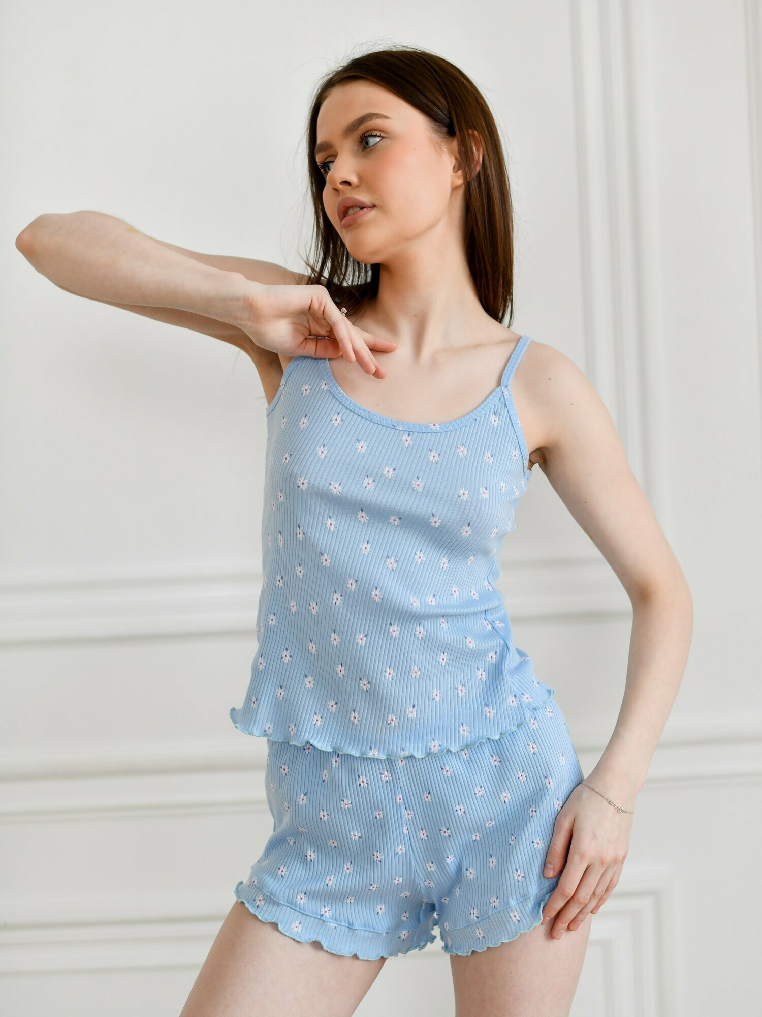 Пижама BUY-TEX.RU женская с шортами в рубчик, размер 42, голубой