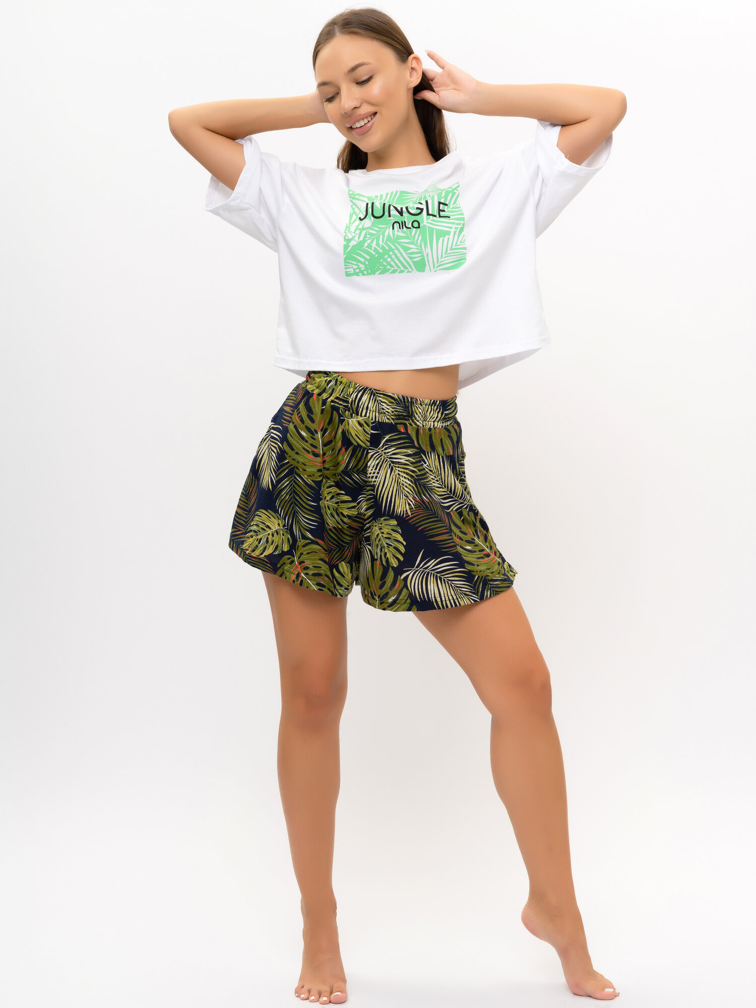 Пижама Nila Осень-зима 2024, размер 46-48, белый-зеленый
