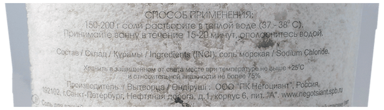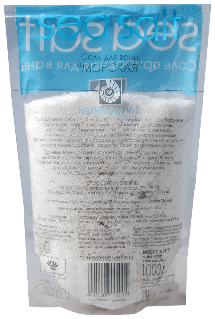 | Дополнительная информация | Соль для ванн Морская натуральная 1кг |