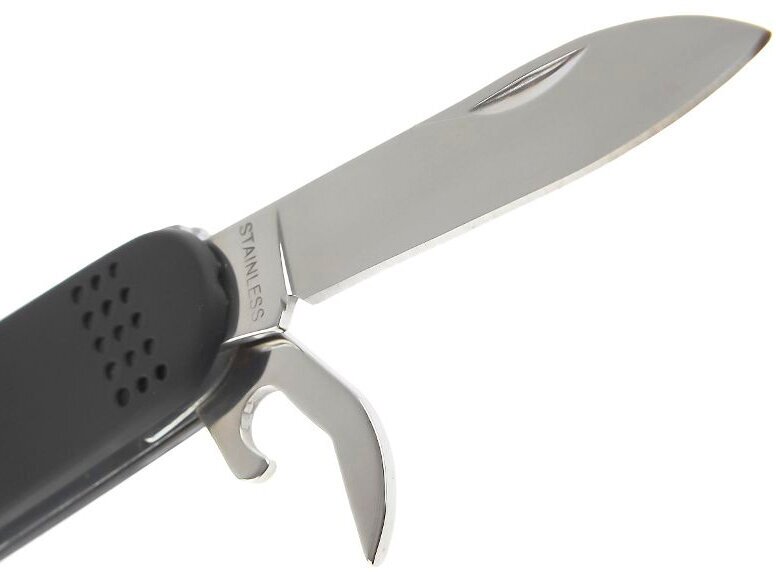 | Минусы: | Основной нож открывается с трудом, одно из лезвий(открывашка) как будто зажато в корпусе, открыть можно только поддев этот сегмент другим ножом или вилкой! |