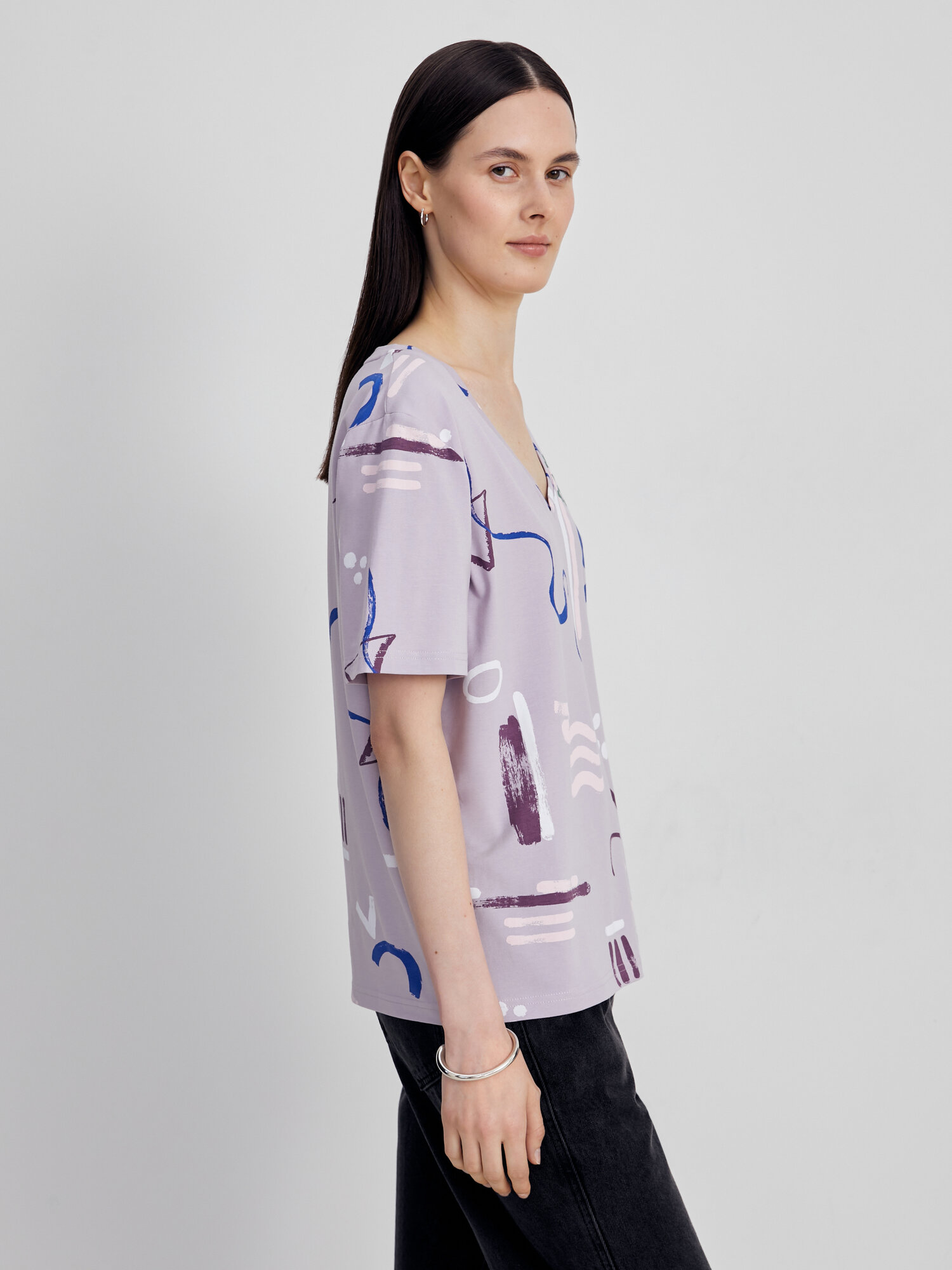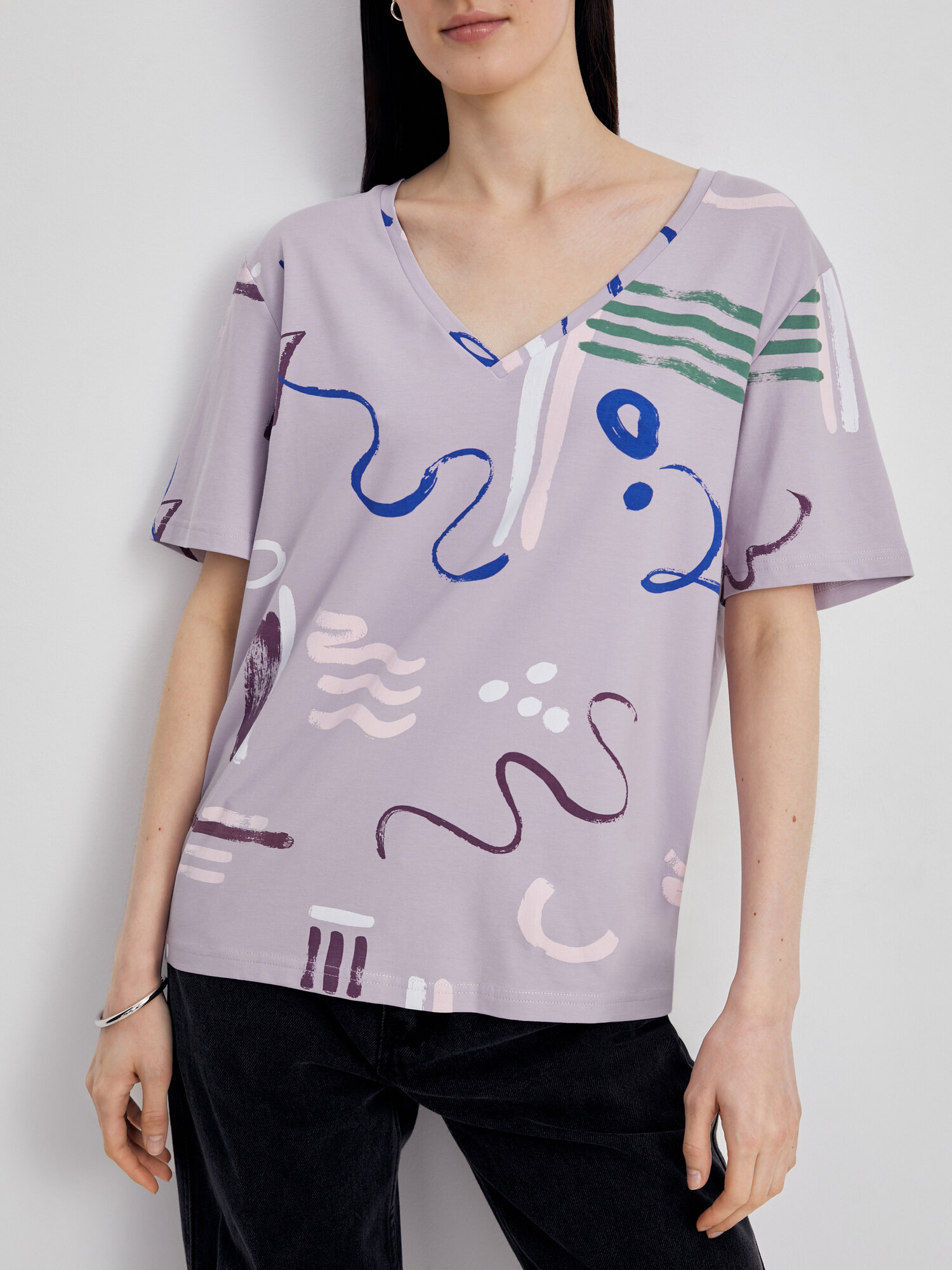 Футболка FINN FLARE с коротким рукавом, размер XS(164-84-90), дымчатый лиловый
