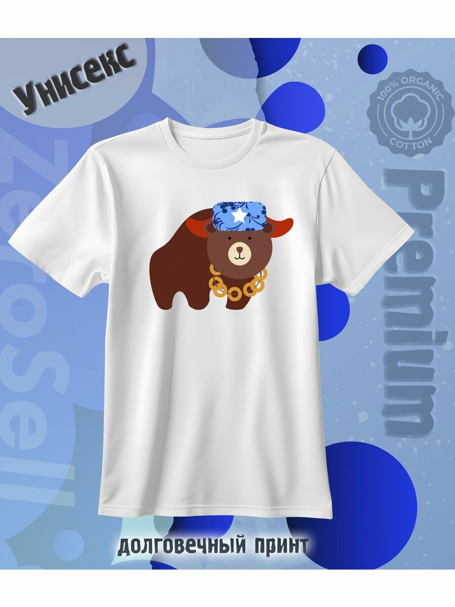 Футболка Zerosell русский медведь, размер S, белый