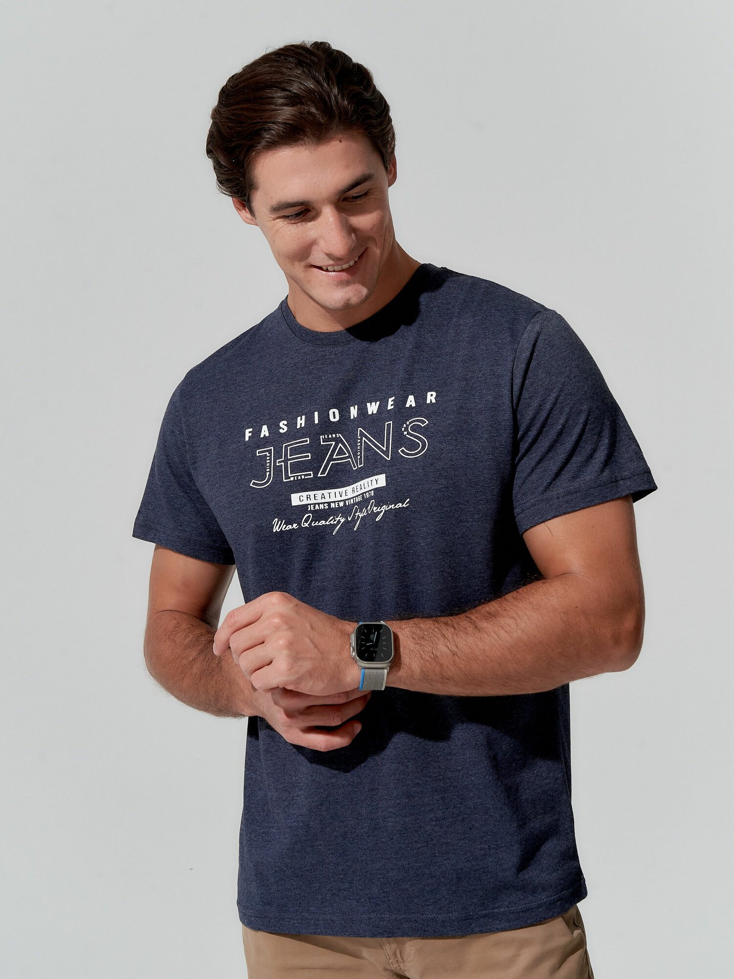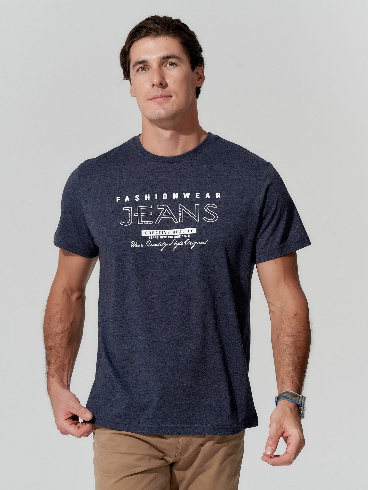 Купить Футболка TRUE BALANCE Весна-лето 2025, размер 46, темно-синий меланж