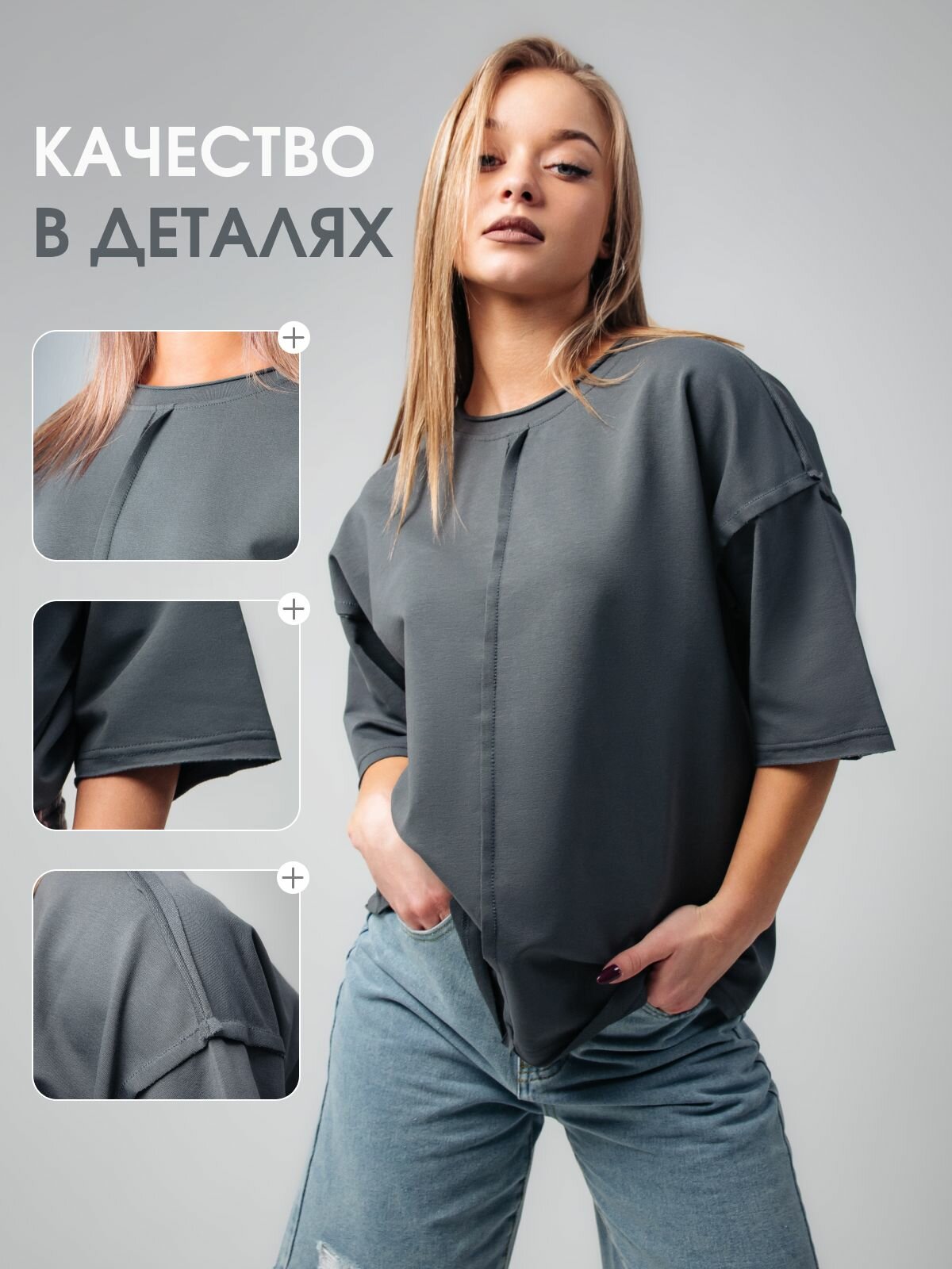 Футболка DARKED Весна-лето 2025, размер XS, серый