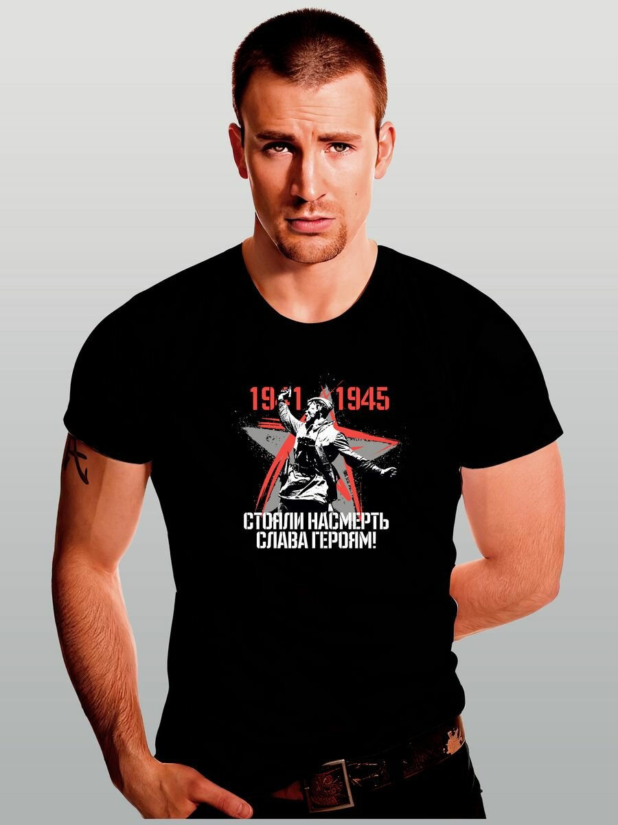 Футболка Zerosell стояли насмерть слава героям, размер M, черный