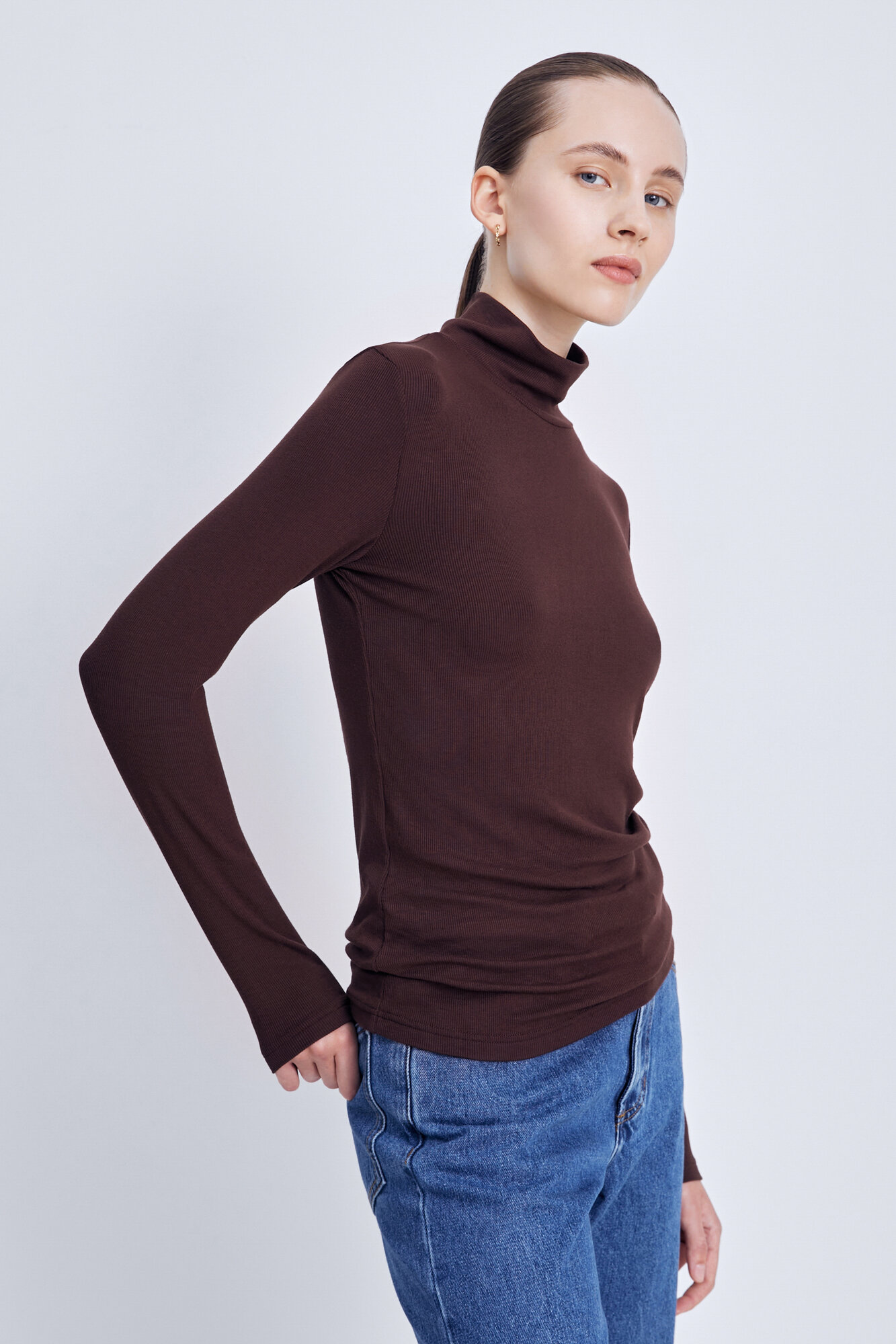 Футболка FINN FLARE лонгслив с длинным рукавом, размер S(170-88-94), темно-коричневый