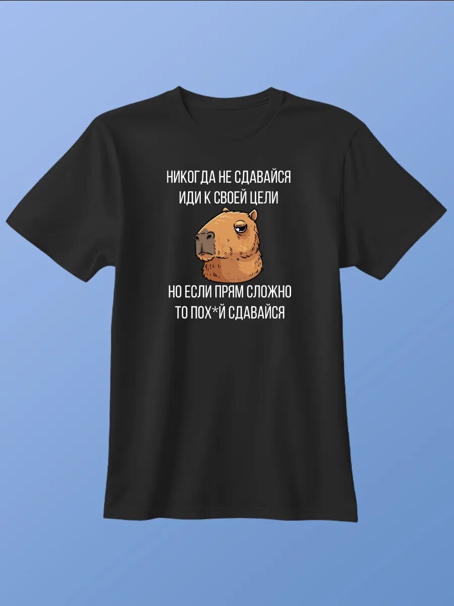 Футболка Zerosell с капибарой никогода не сдавайся, размер M, черный
