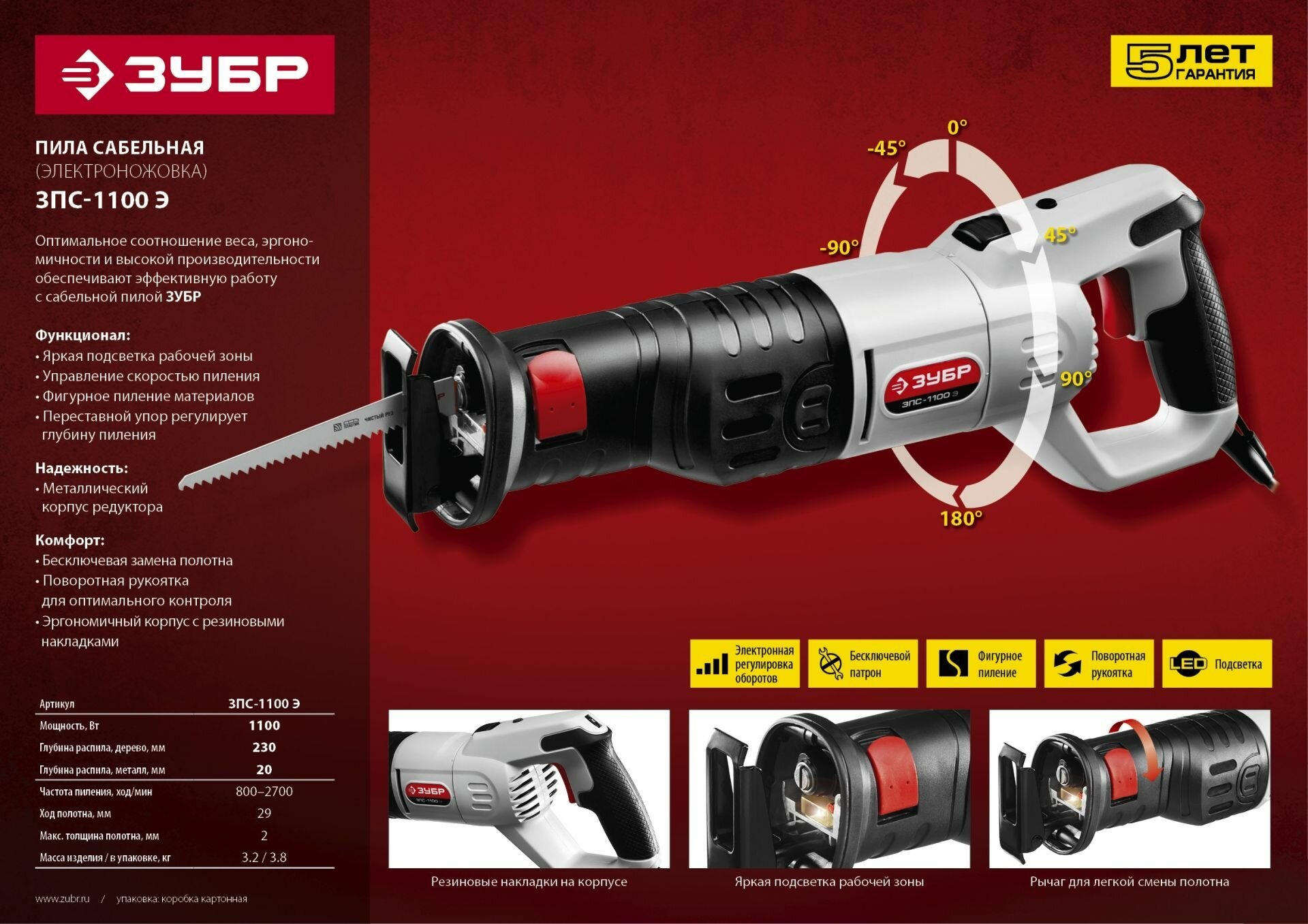 СохранитьСабельная пила Зубр ЗПС-1100 Э интересное: