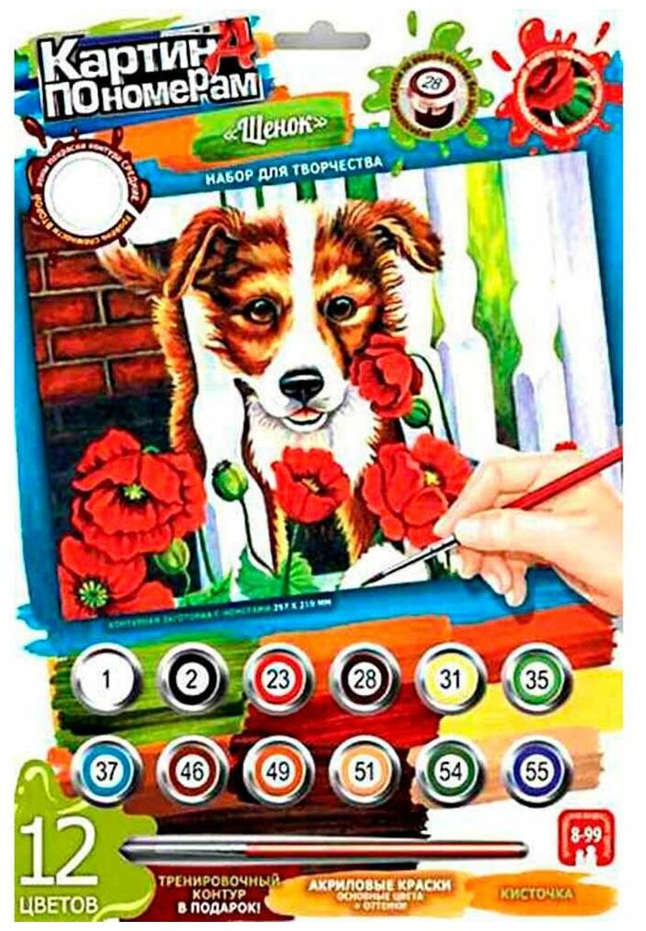 Набор для тв-ва Картина по номерам средняя Щенок интересное: