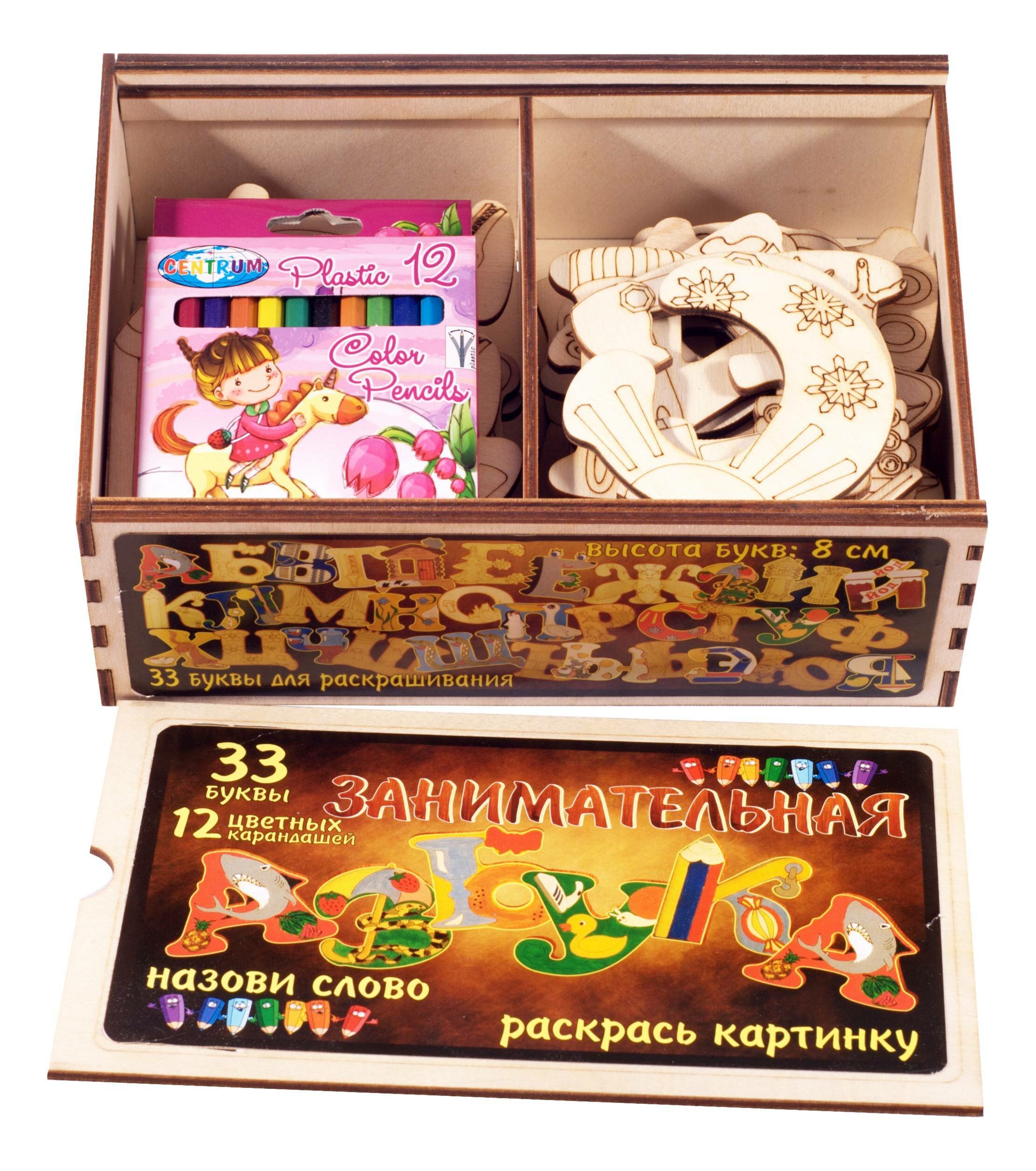 Развивающая игра Нескучные игры Занимательная Азбука 33 буквы и 12 цветных карандашей