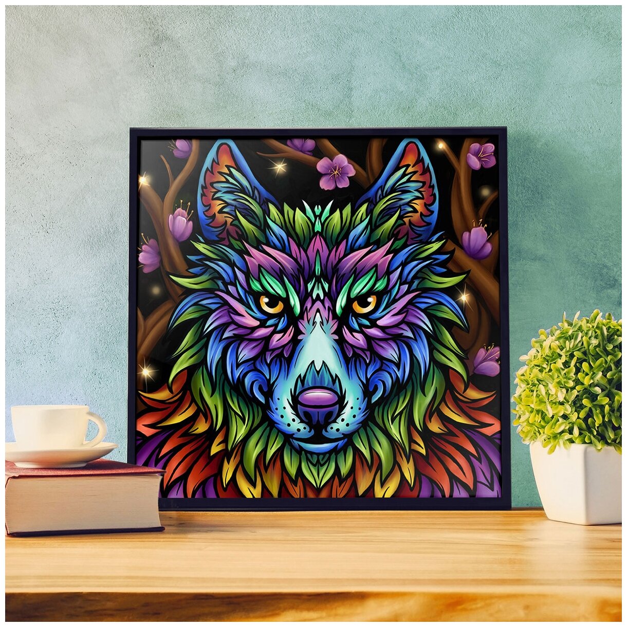 Картина стразами «Радужный волк» (АЖ-1754) интересное: