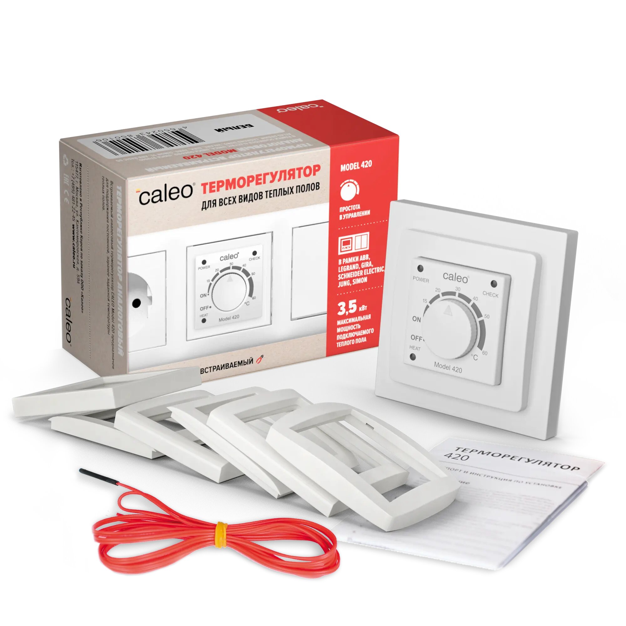 Терморегулятор CALEO 420 с адаптерами, встраиваемый аналоговый, 3,5 кВт Белый