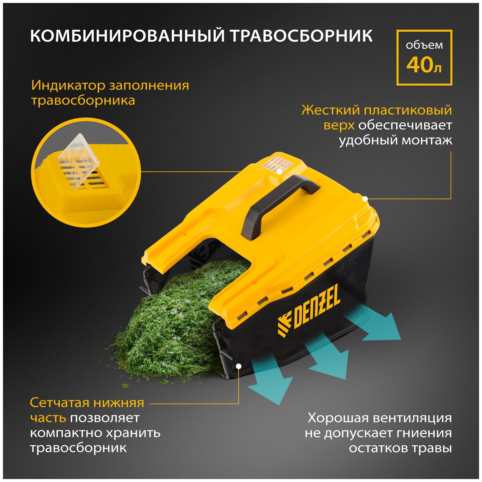 Газонокосилка электрическая GM-1800, 1800 Вт, ширина 38 см, 6 уровней, травосборник 40 л. Denzel Denzel