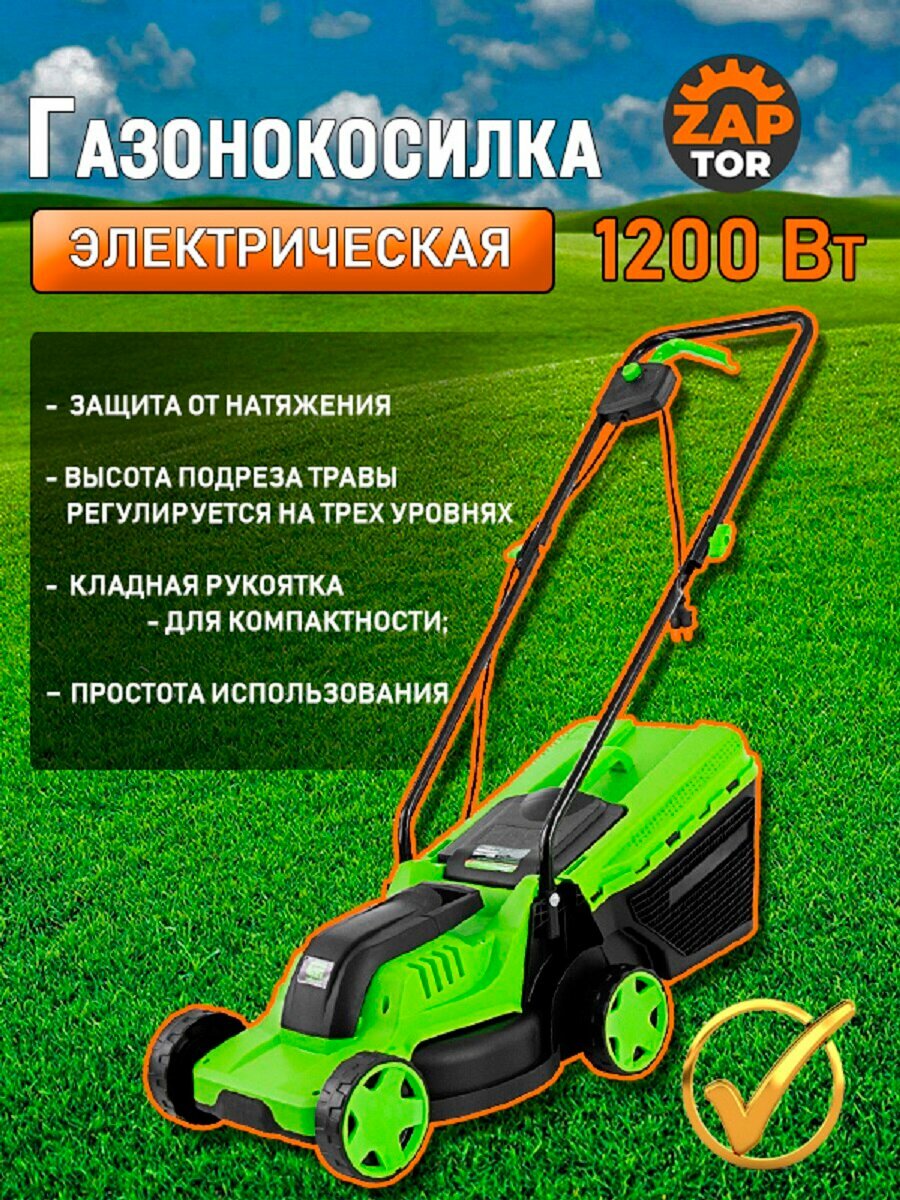 Газонокосилка электрическая L1200, 1200 Вт, ширина 32 см, 3 уровня, пластиковый травосборник 30 л. С