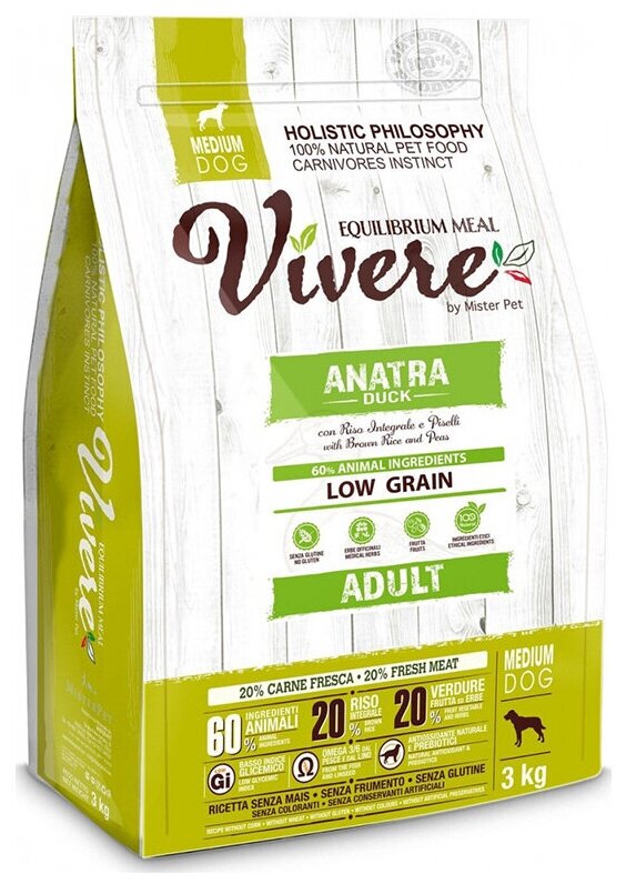 Сухой корм для собак Vivere утка 1 уп. х 1 шт. х 3 кг (для средних пород)