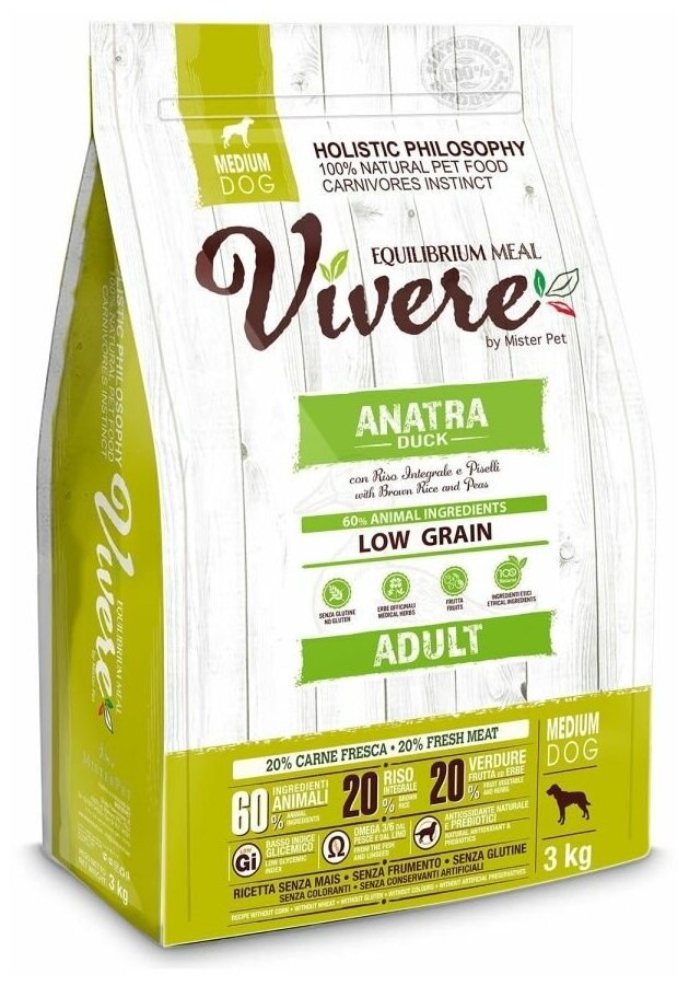 Ниже Вы можете прочитать отзывы на VIVERE сухой корм для взрослых собак средних пород с уткой - 3 кг, ознакомится с подробными характеристиками, посмотреть интересные обзоры и фотографии на VIVERE сухой корм для взрослых собак средних пород с уткой - 3 кг.