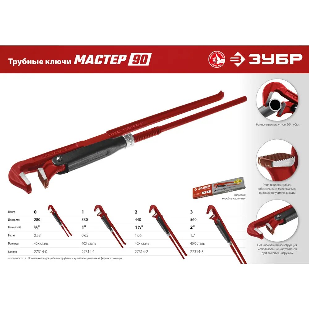 ЗУБР Мастер-90, №0, ключ трубный, прямые губки (27314-0)
