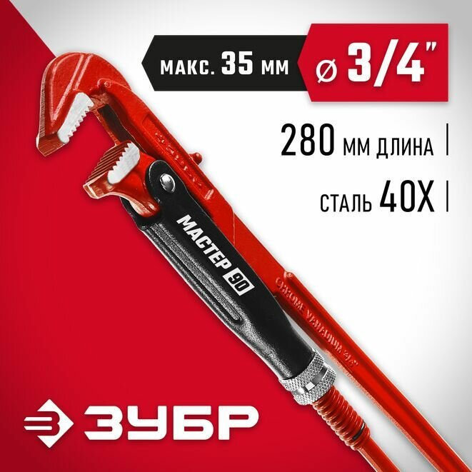 ЗУБР Мастер-90, №0, 3/4″, 280 мм, Трубный ключ с прямыми губками (27314-0)