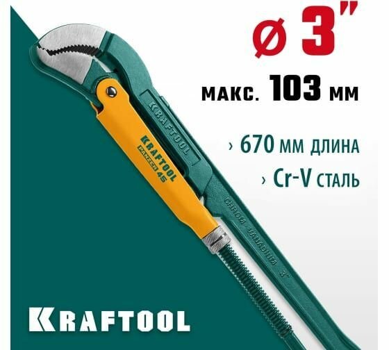 Трубный ключ с изогнутыми губками KRAFTOOL PANZER-45 №4 3" 670 мм 2735-30