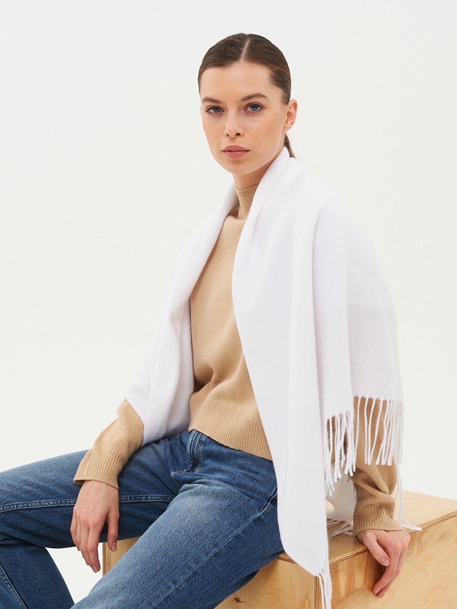 Платок Павловопосадская платочная мануфактура для женщин,65х65 см, белый