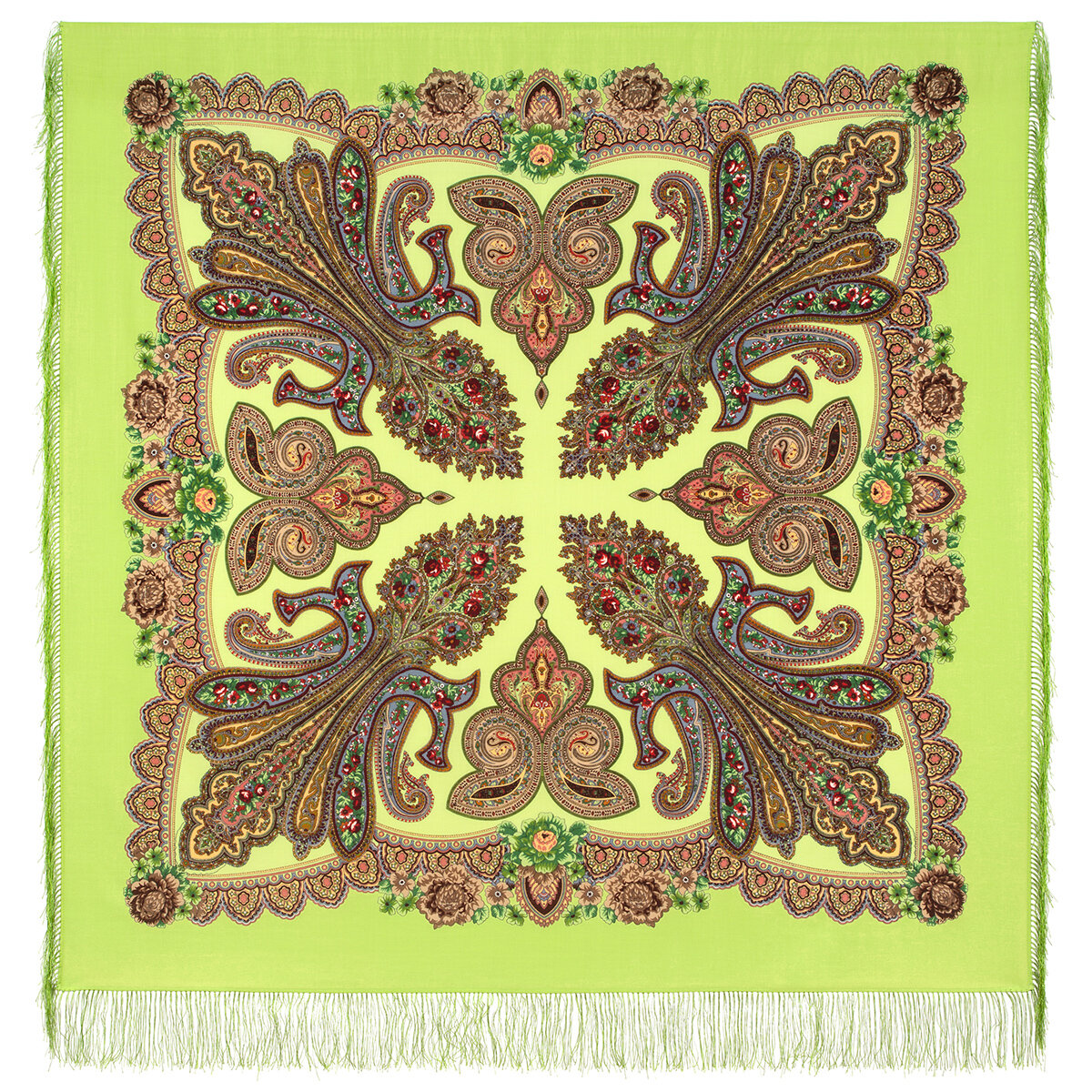 Платок Павловопосадская платочная мануфактура для женщин,146х146 см, светло-зеленый интересное: