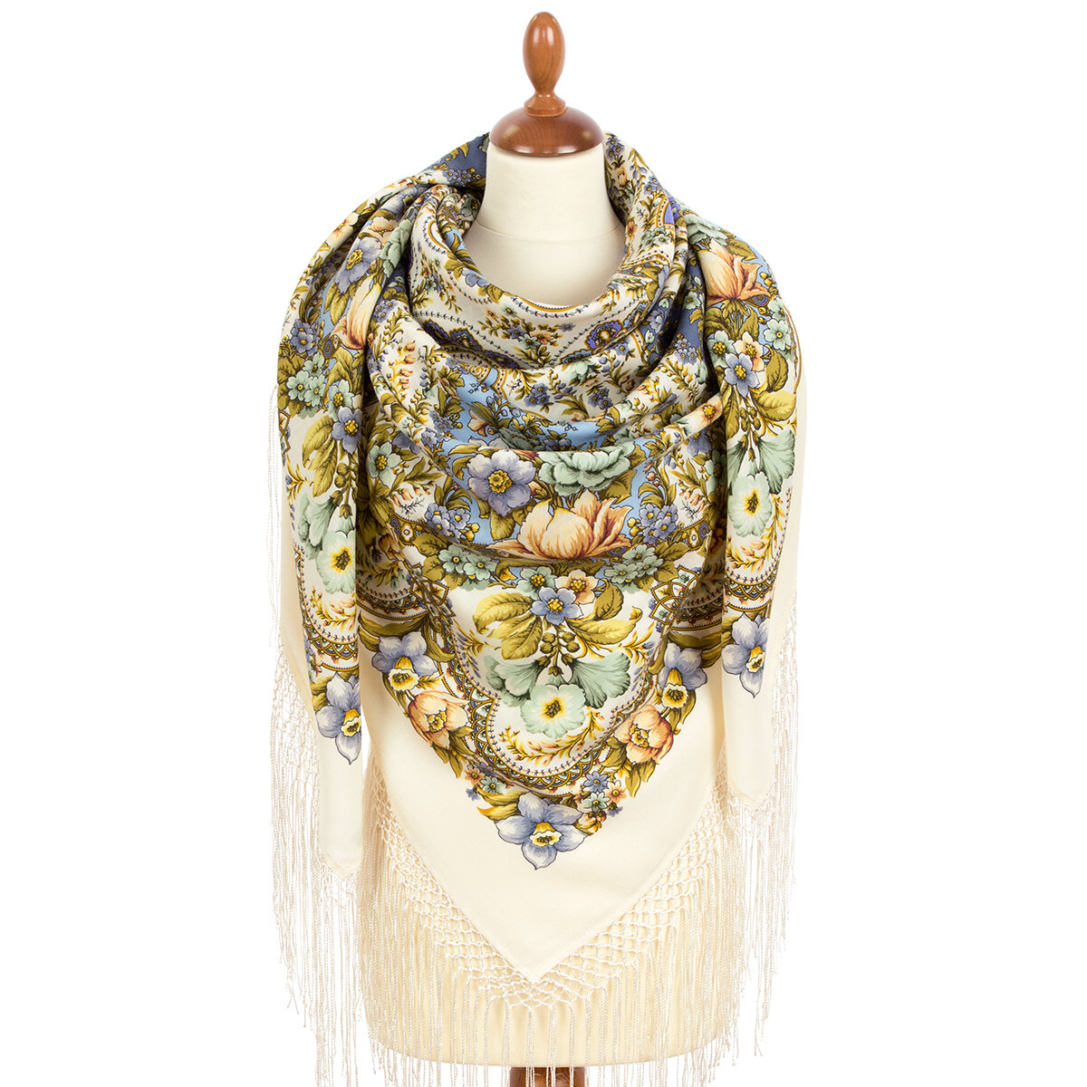 Купить Платок Павловопосадская платочная мануфактура для женщин,148х148 см, бежево-белый