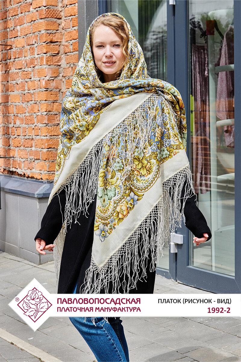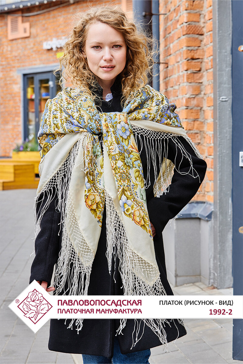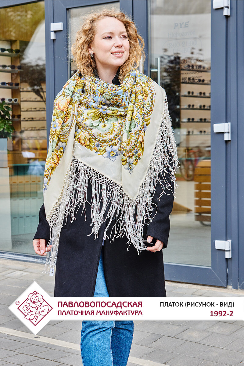 Платок Павловопосадская платочная мануфактура для женщин,148х148 см, бежево-белый интересное:
