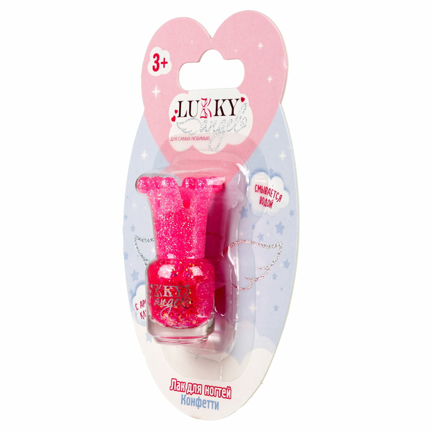 Купить Детский лак для ногтей Lukky Angel Конфетти, смываемый водой, цвет ярко-розовый с блестками, с ароматом клубники, 5 ml