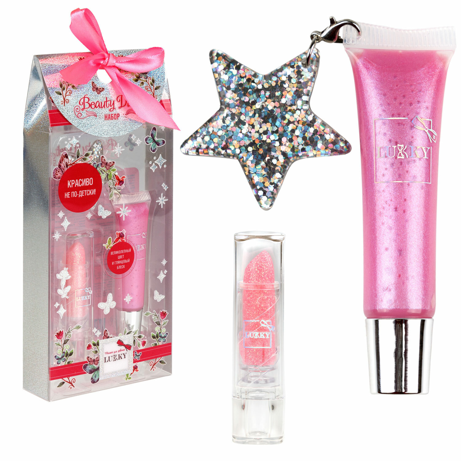 Набор детской косметики Lukky Beauty Duet блеск для губ и помада с блёстками интересное:
