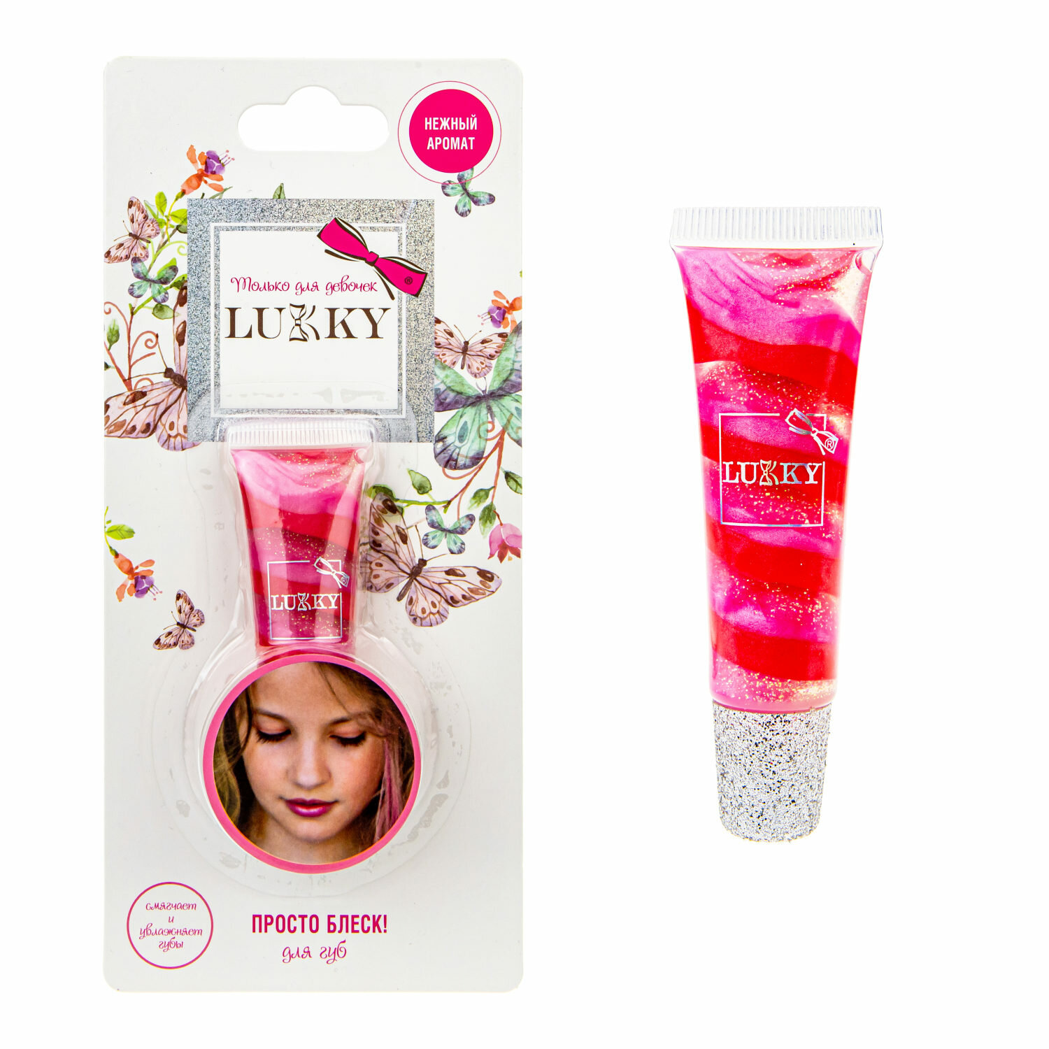 Блеск для губ LUKKY с блестками розовый "Клубничное суфле" интересное: