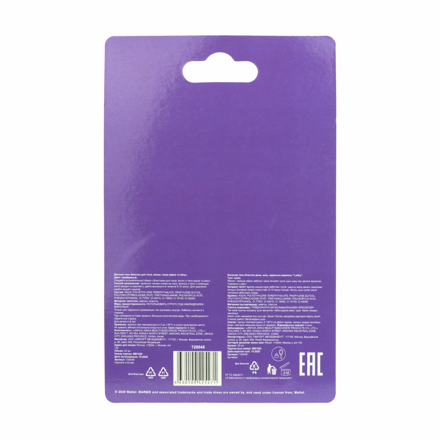Гель-блестки для тела и лица Barbie BMR1959 Lukky в наборе с кисточкой интересное:
