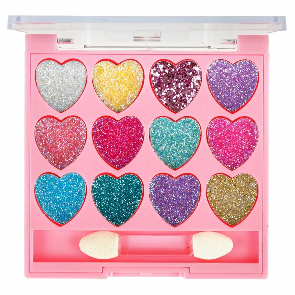 Купить Палетка крем-теней для век Lukky Angel Сердечки с блёстками розовая коллекция 12 цветов Т25835
