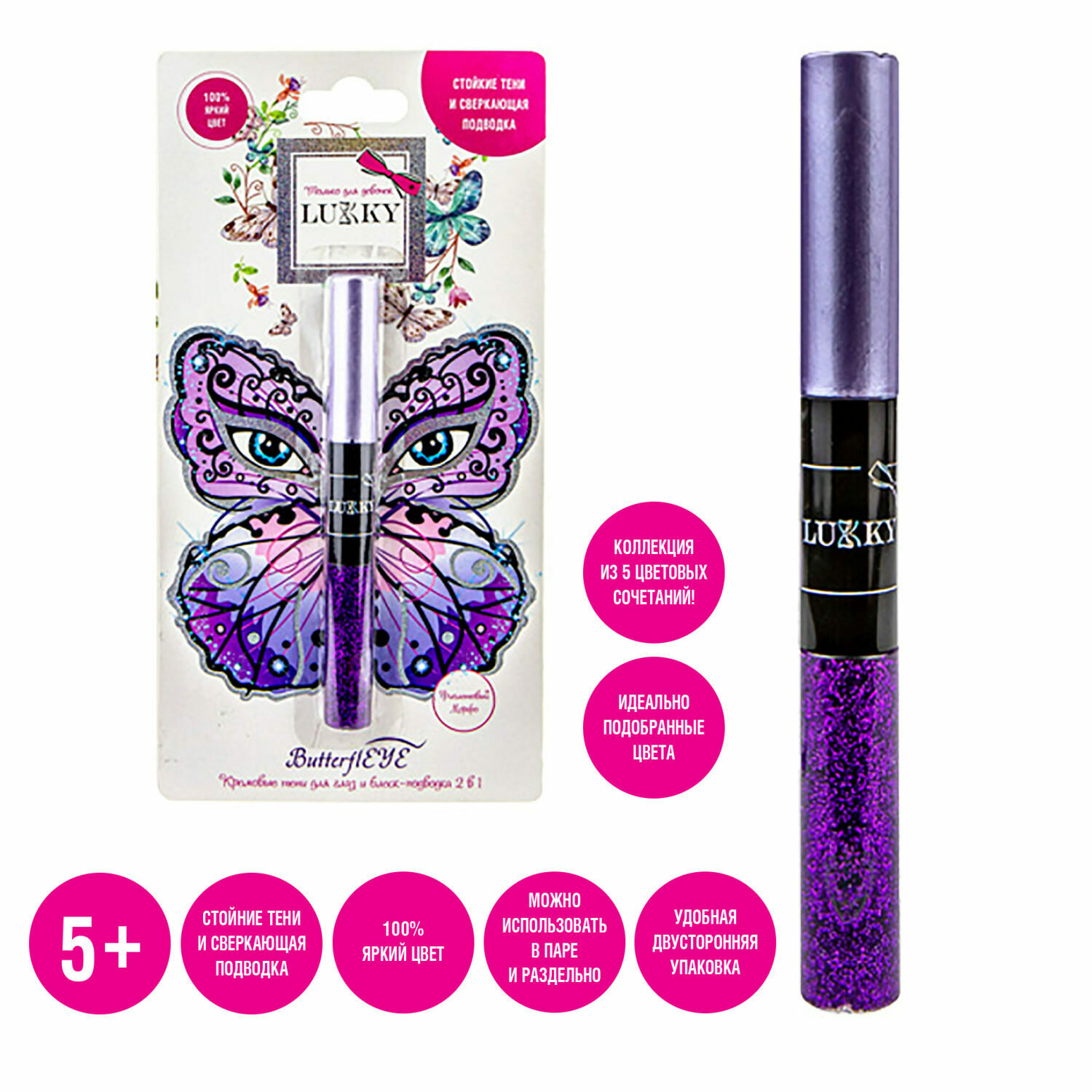 Подводка Lukky ButterflEYE для контура глаз и жидкие тени 2в1 фиолетовый Т18912 интересное: