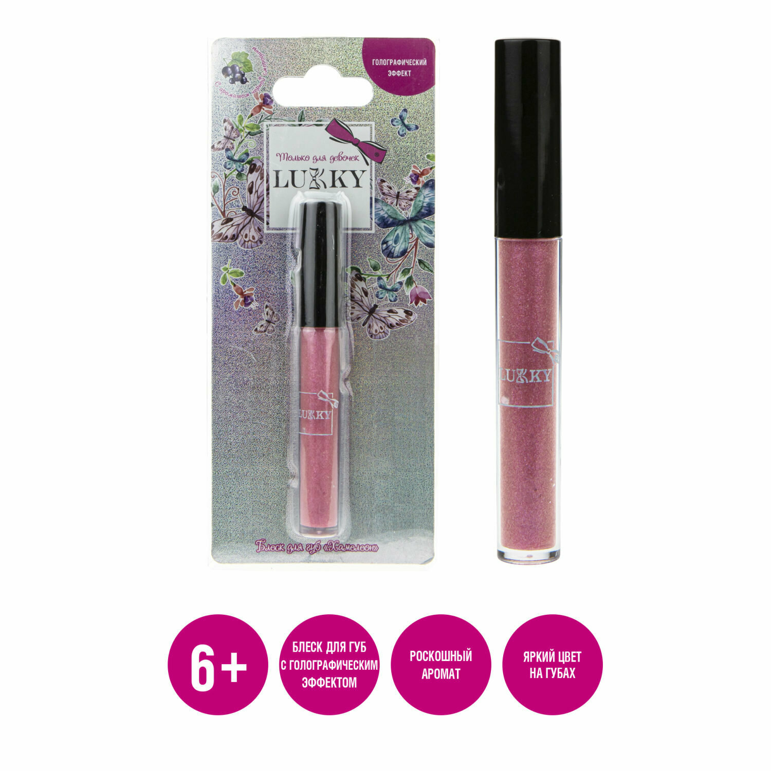 Купить Блеск для губ Lukky Голографический 3 мл сливово-розовый, с ароматом черной смородины