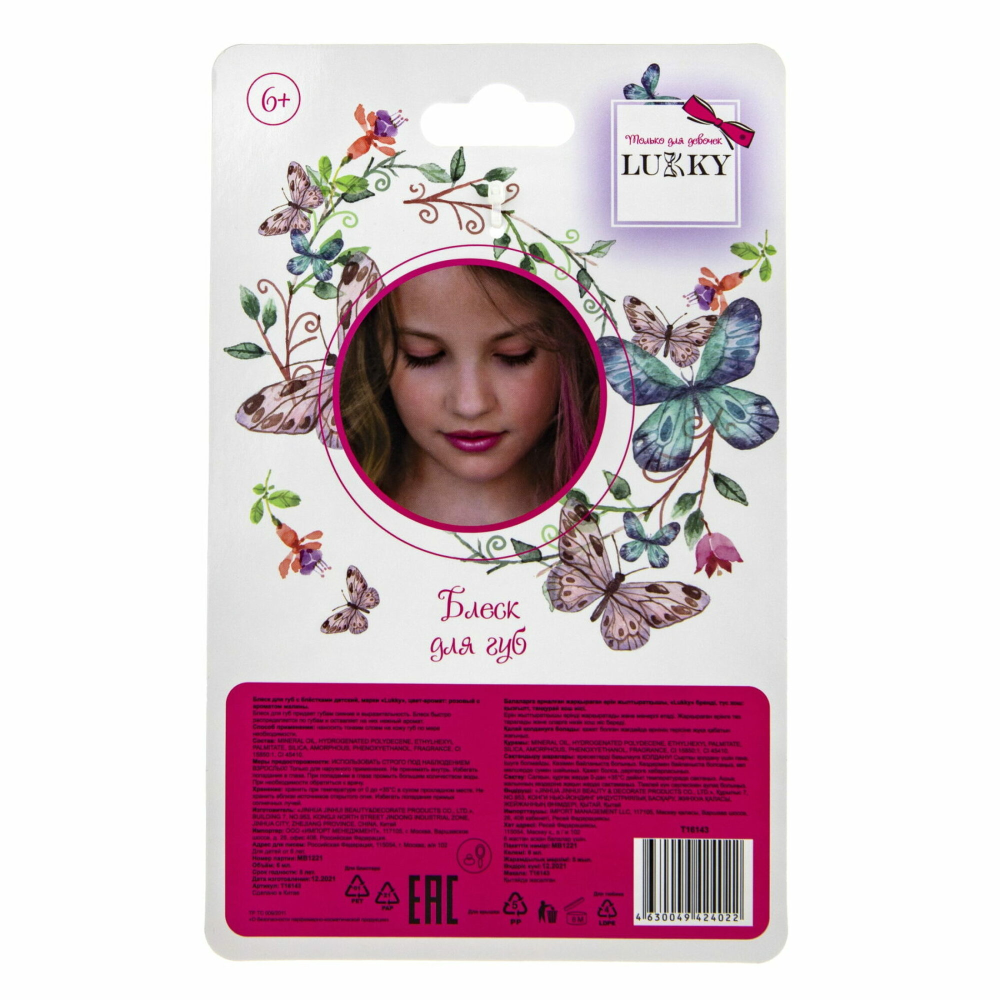 Блеск для губ LUKKY малиновый с блестками, розовый 6мл.+брелок интересное: