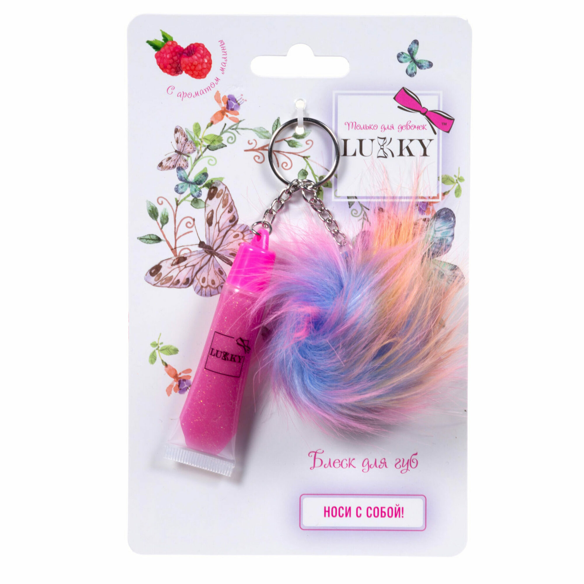Купить Блеск для губ LUKKY малиновый с блестками, розовый 6мл.+брелок